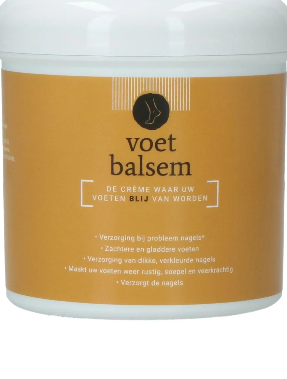 Maak je voeten én nagels weer vrolijk met de blije voeten voetenbalsem. De crème bevat de werkende bestandsdelen kamfer en eucalyptus olie. Dit maakt de crème geschikt voor verzorging van probleem nagels, zachtere en gladdere voeten en verzorging van dikke, verkleurde nagels. Door de unieke samenstelling van exctracten wordt de crème snel door de huid opgenomen en wordt deze extra gehydrateerd! De crème is daarom ook geschikt voor droge voeten. Gebruiksaanwijzing: voor verbetering van kalk- en schimmelnagel dep je iedere dag de nagels met witte natuurazijn. Dit laat je opdrogen en daarna smeer je de voeten en de nagels in met de Blije voeten voetenbalsem. Daarna 1x per dag de nagels en de totale voet in blijven smeren.