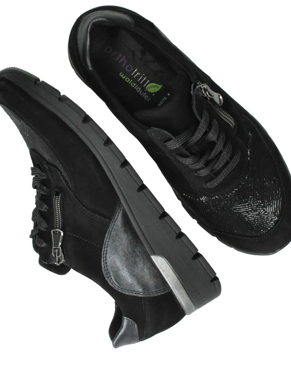 De Ramona van zijn speciaal ontworpen voor vrouwen die op zoek zijn naar comfort, ondersteuning én stijl. Deze sneaker is uitgevoerd in zwart nubuck, leer en elastisch textiel dat perfect meebeweegt met je voet. Dankzij de extra brede voetwijdte K en het lichte gewicht is dit model ideaal voor dagelijks gebruik.
