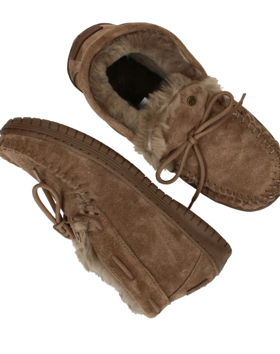 De voor dames in een warme bruin/taupe tint is de perfecte keuze voor wie houdt van luxe en comfort. Deze heerlijke pantoffel is vervaardigd uit zacht suède en voorzien van een volledig warme voering van echte wol, zodat je voeten behaaglijk warm blijven, zelfs op de koudste dagen. De stevige, flexibele zool zorgt voor goede grip en maakt de pantoffel ook geschikt voor kort gebruik buitenshuis. Dankzij de comfortabele G-voetbreedte geniet je van een ontspannen pasvorm die niet knelt.