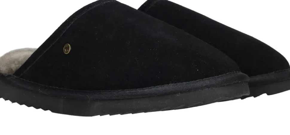 - De zwarte pantoffel heeft een bovenwerk van suède.
