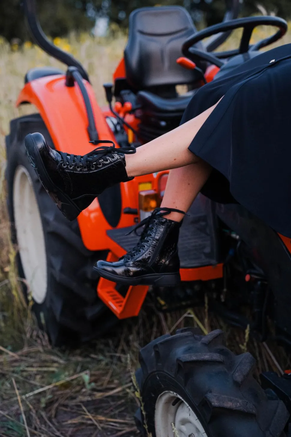 De Xsensible Albi is een elegante hoge dameslaars met een opvallende zwarte lakfinish in crocostructuur. Deze laars combineert een modieuze uitstraling met het ongeëvenaarde comfort van de Stretchwalker-technologie. Perfect voor wie graag stijlvol én stabiel door het leven wandelt.