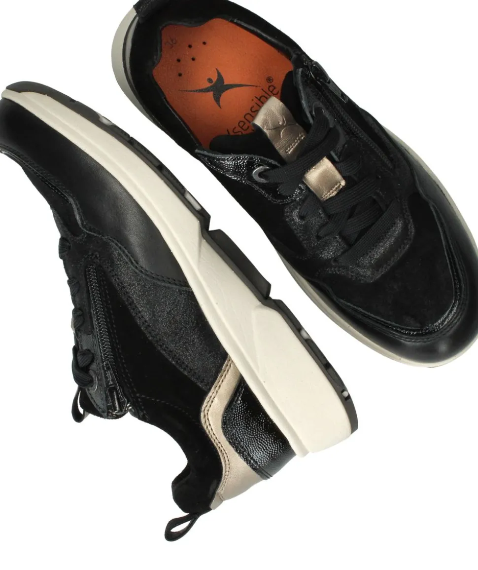 De Xsensible Grenoble Stretchwalker zijn de perfecte keuze voor die comfort, stijl en functionaliteit willen combineren. Het hoogwaardige gladde leer vormt zich mooi om de voet en biedt samen met de H1/2 voetwijdte een fijne pasvorm. Dankzij de Stretchwalker-zool wordt elke stap dempend en ondersteunend afgewikkeld, ideaal voor lange dagen of gevoelige voeten. De zwarte kleur maakt deze sneaker makkelijk te combineren met elke outfit.