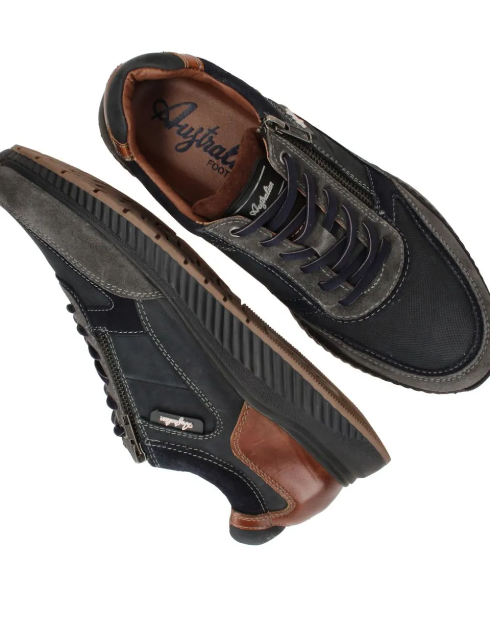 Deze Australian Maurizio sneaker is uitgevoerd in blauw nubuck en leer, en heeft een moderne, sportieve uitstraling. Dankzij het uitneembare voetbed is de schoen geschikt voor eigen inlegzolen en biedt hij extra comfort bij dagelijks gebruik.
