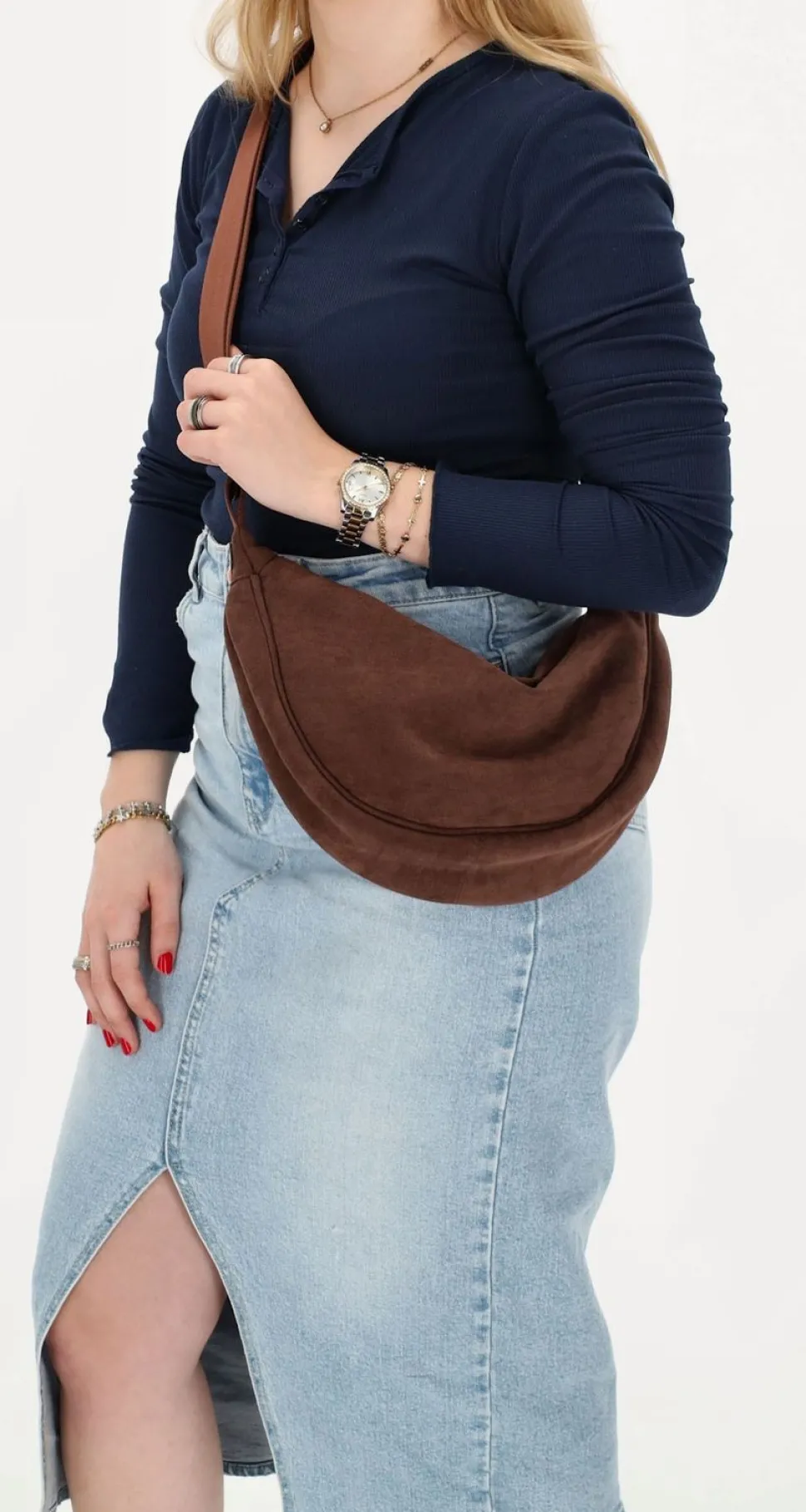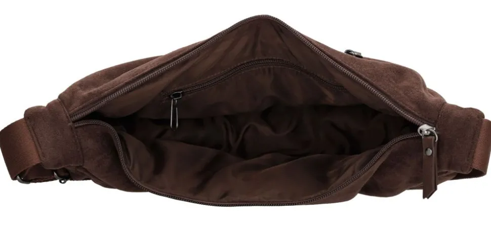 - De gehele tas is gemaakt van synthetisch suède materiaal en textiel.