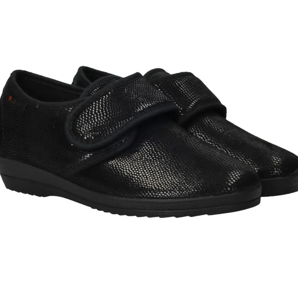 Deze voor in klassiek is ontworpen voor optimaal gemak en draagcomfort. De buitenkant is gemaakt van zacht textiel met een subtiele glans en voelt aangenaam aan. Dankzij de praktische klittenbandsluiting is de pantoffel eenvoudig aan en uit te trekken, ook bij een hogere wreef of gevoelige voeten. De textielen voering zorgt voor warmte en ademend comfort, waardoor je voeten heerlijk ontspannen blijven.