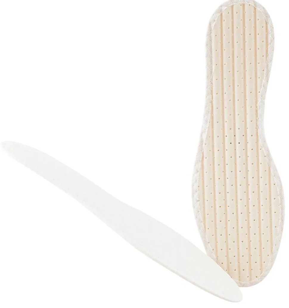 Blije voeten met deze luchtige badstof zolen van 100% katoen van Bergal. De ideale zool voor wie het liefste blootsvoets loopt. Het koelende katoen is huidvriendelijk en de zool is opgevuld met antislip latexschuim. Het groefprofiel van de zool zorgt ervoor dat er geen plooien gevormd worden op de zool, terwijl de doorlopende perforatie (gaatjes) zorgt voor luchtigheid! Perfect voor de zomer, of voor mensen die houden van luchtige, toch stevige zolen! De zolen hebben een aangename vanille geur Uitwasbaar met de hand tot 30 graden Inhoud: 1 paar zolen