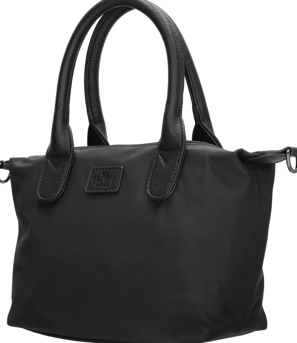 Deze handtas uit de damestassen collectie van Charm is gemaakt van stevig synthetisch materiaal in klassiek zwart, met ton-sur-ton kunstleren details. De tas is lichtgewicht, slijtvast en ideaal voor wie houdt van een functioneel en stijlvol ontwerp.