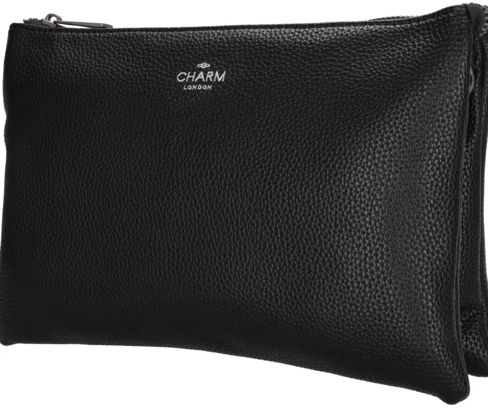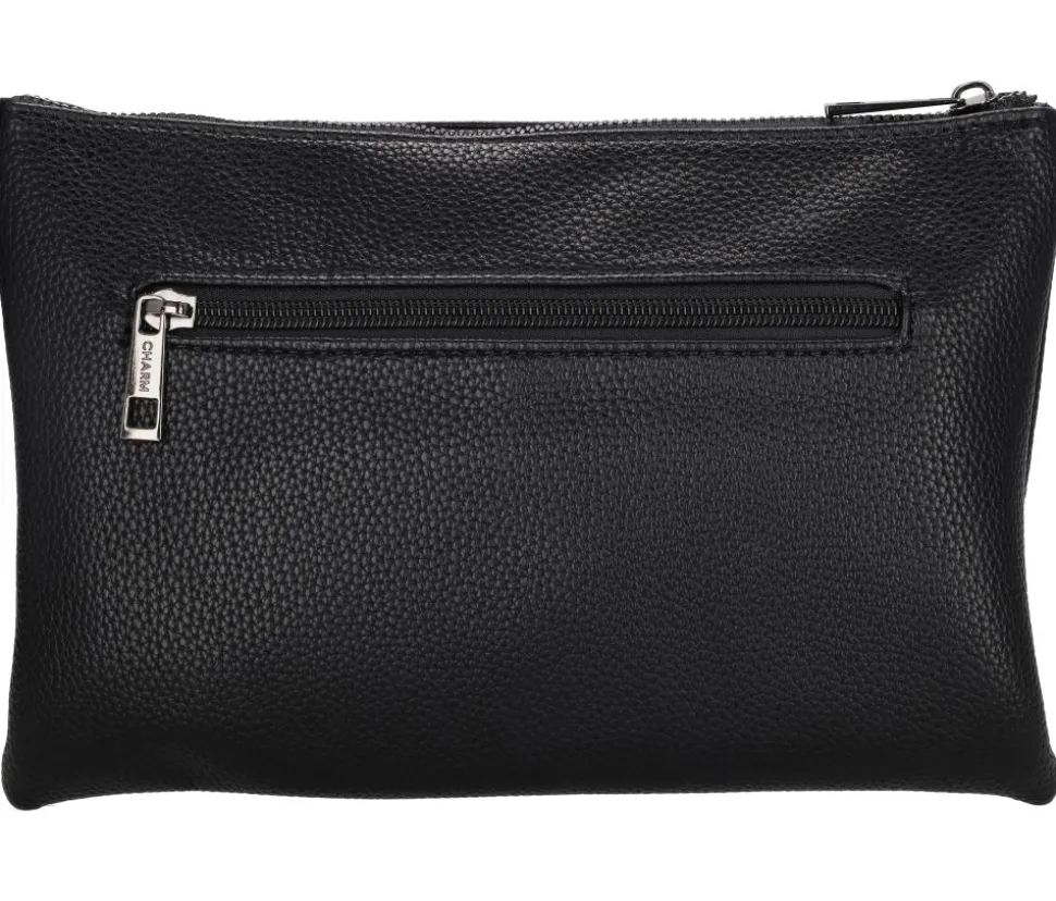 Deze schoudertas uit de damestassen collectie van Charm is gemaakt van stevig kunstleer in klassiek zwart. De structuur van het materiaal zorgt voor een luxe uitstraling, terwijl de brede, afneembare band zorgt voor een sportieve touch.