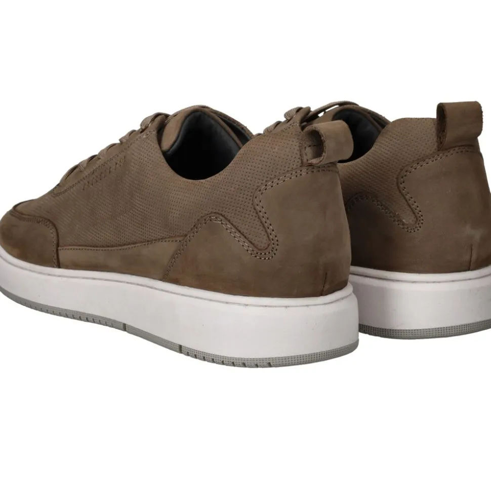 Deze taupekleurige Cycleur de Luxe Kaveri veterschoenen combineren een strak design met hoogwaardig comfort. Het bovenwerk van nubuck leer voelt soepel en luxe aan, terwijl de leren voering zorgt voor een ademend en zacht binnenklimaat. Dankzij de stevige witte zool en het sportieve silhouet is deze veterschoen perfect voor heren die houden van een casual, maar verzorgde look.