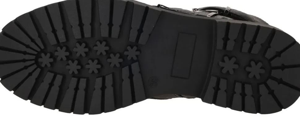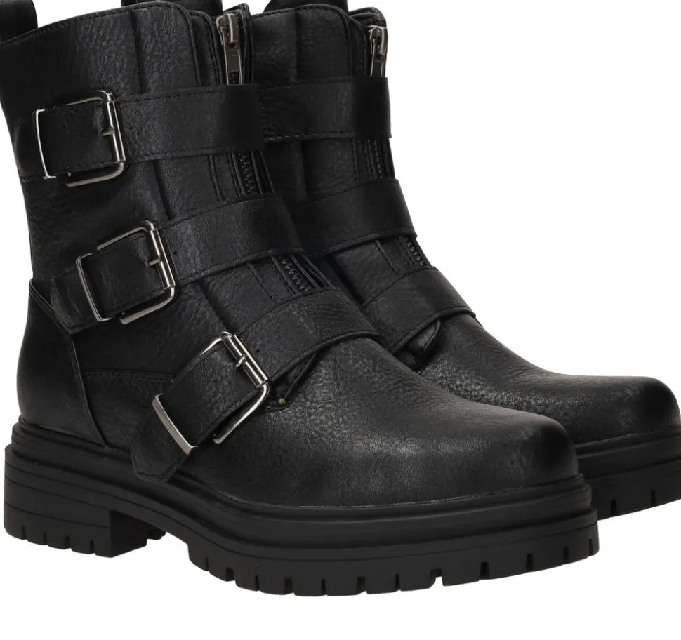 - De bikerboots zijn gemaakt van kunstleer en textiel.