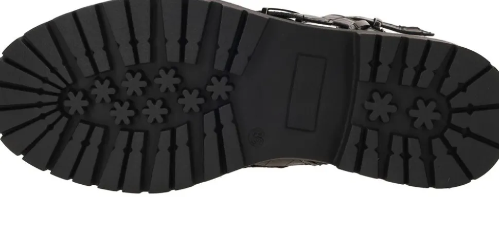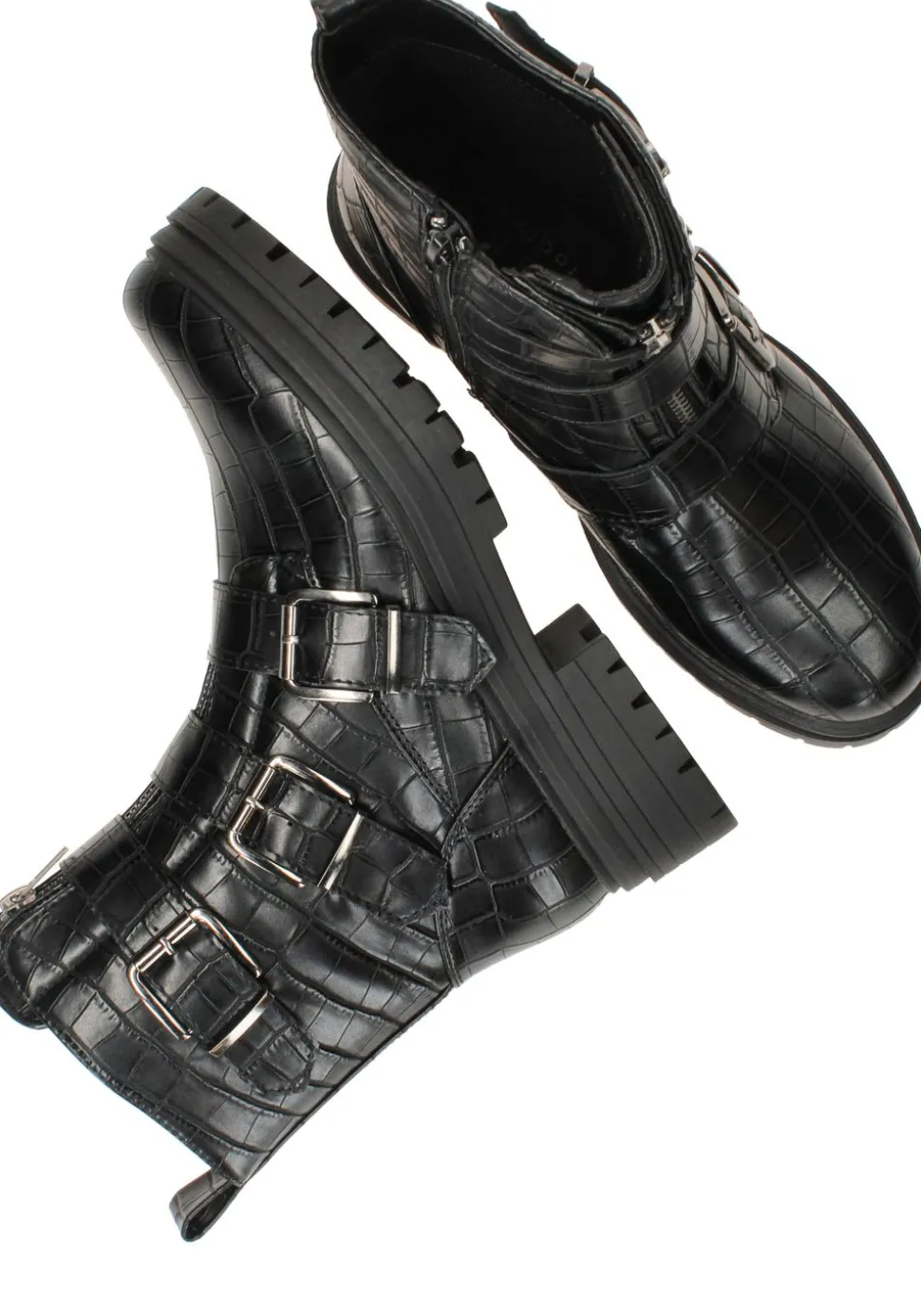 - De bikerboots zijn gemaakt van kunstleer en textiel.