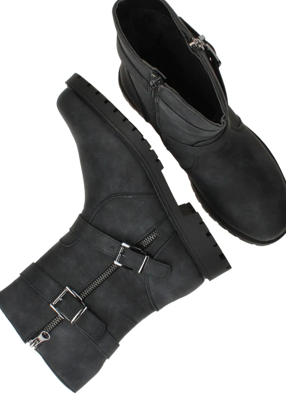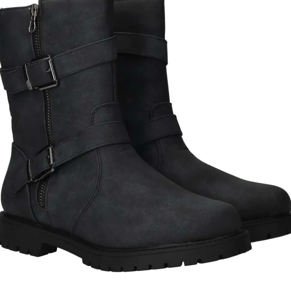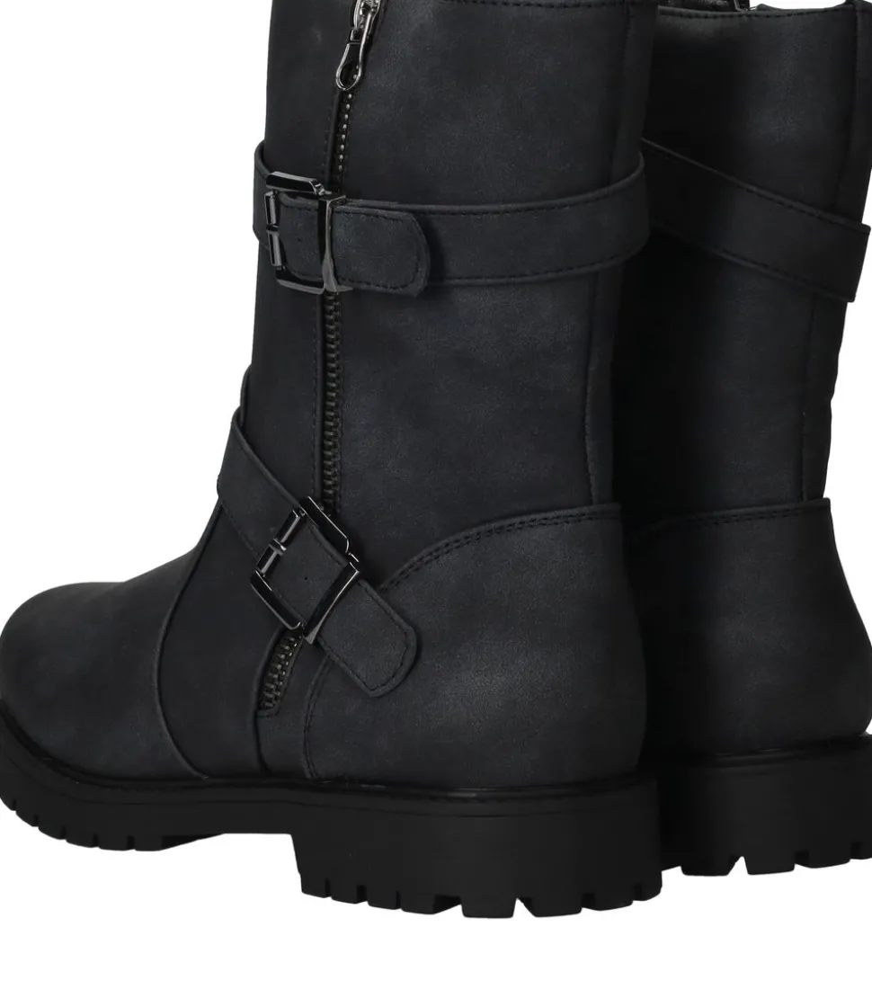 - De bikerboots zijn gemaakt van kunstleer en textiel.