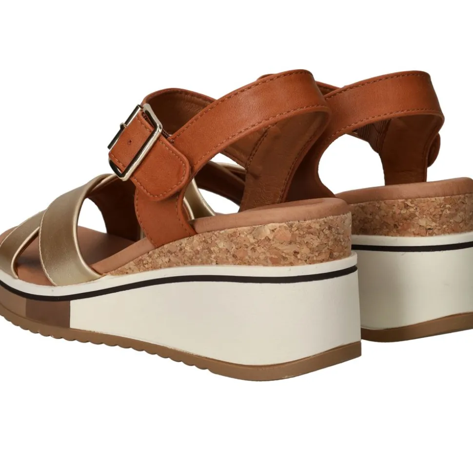 - de combinatie van cognac en goud leer geeft de sandaal een warme en stijlvolle look
