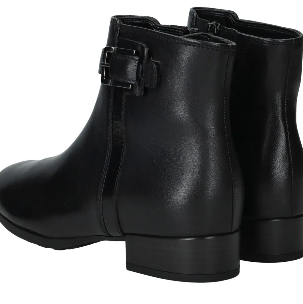 De enkellaarsjes zijn een elegante en comfortabele keuze voor dames. Deze zwarte zijn uitgevoerd in leer en hebben een H-voetbreedte, waardoor ze extra ruimte en draagcomfort bieden. Dankzij de lage hak en subtiele gesp zijn ze veelzijdig en perfect voor zowel dagelijks gebruik als geklede gelegenheden.