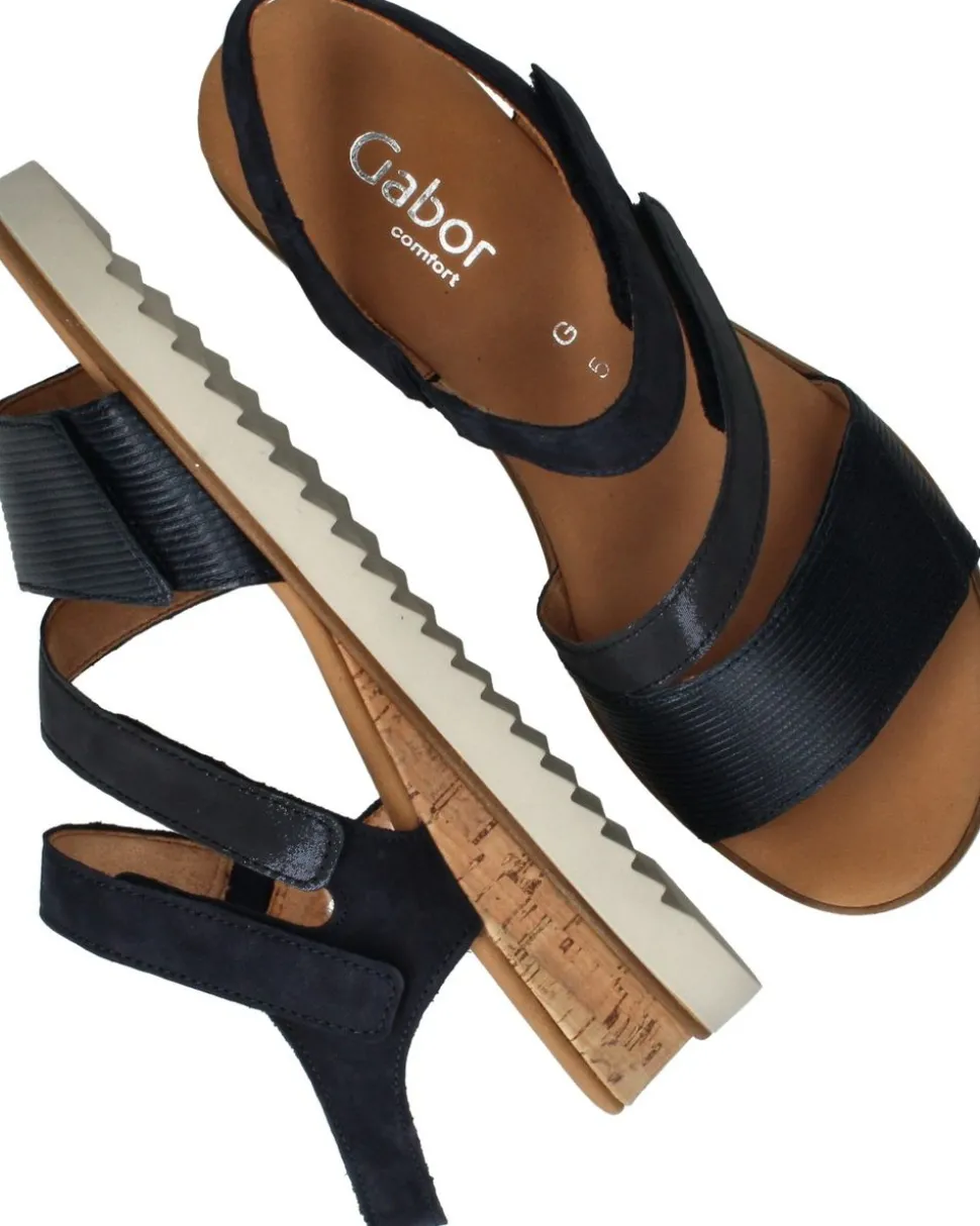 Loop comfortabel en stijlvol de zomer door met de Gabor sandalen, model 62.754. Deze damessandalen in een prachtige blauwe kleur zijn vervaardigd uit hoogwaardig leer, wat zorgt voor een zachte en luxe uitstraling. De sandalen zijn voorzien van een comfortabele sleehak en een zachte binnenzool, waardoor je de hele dag comfortabel kunt lopen. De opvallende gesp met decoratieve details geeft deze sandalen een unieke en stijlvolle touch.