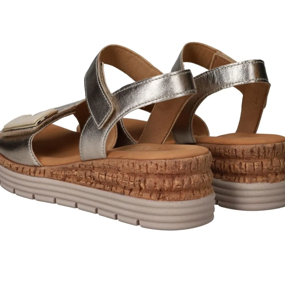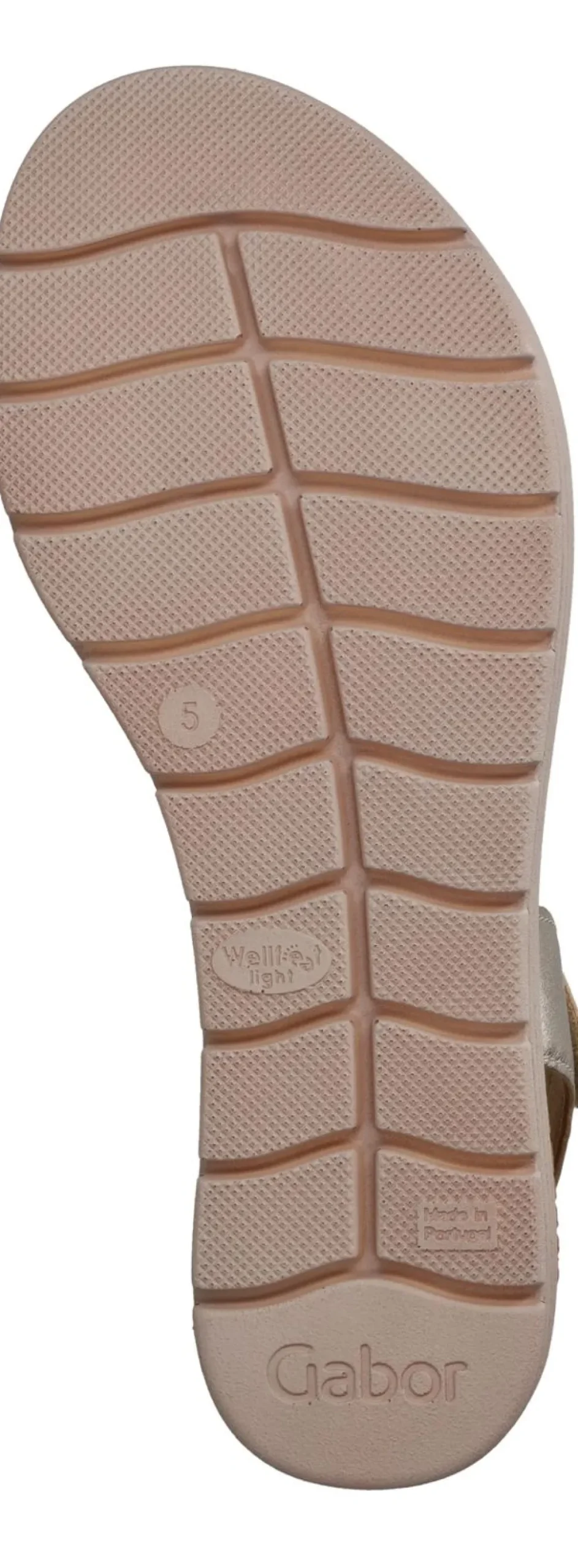 Laat je voeten stralen met de Gabor sandalen, model Florenz. Deze damessandalen in een schitterende gouden kleur zijn vervaardigd uit hoogwaardig leer, wat zorgt voor een luxe uitstraling en een comfortabele pasvorm. De sandalen zijn voorzien van een comfortabele sleehak en een zachte binnenzool, waardoor je de hele dag comfortabel kunt lopen. De opvallende gesp met decoratieve details geeft deze sandalen een unieke en stijlvolle touch.