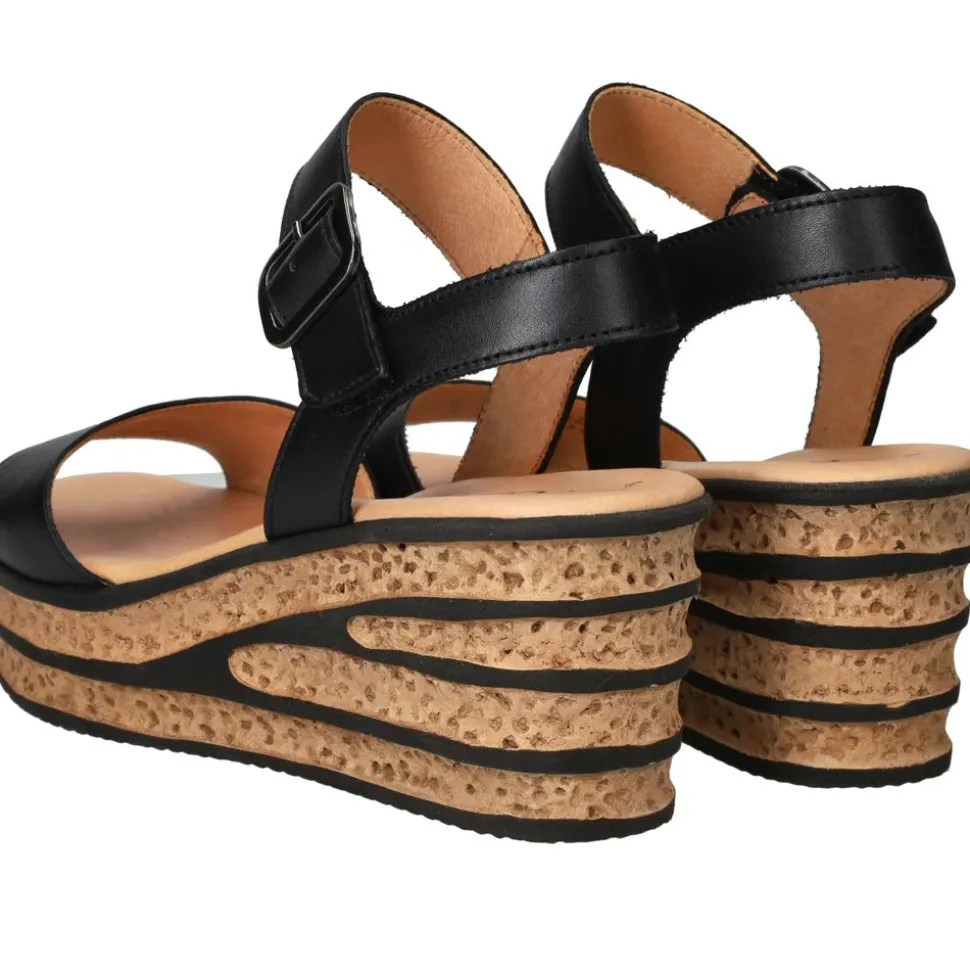 - de combinatie van donkerblauw leer en de kurklook sleehak geeft de sandaal een trendy en zomerse uitstraling