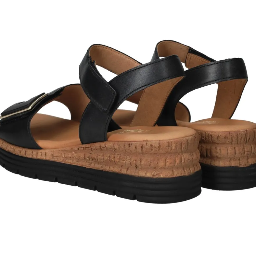 Ervaar ultiem comfort en een tijdloze stijl met de Gabor sandalen, model Florenz. Deze damessandalen in een diepe zwarte kleur zijn vervaardigd uit hoogwaardig leer, wat zorgt voor een luxe uitstraling en een comfortabele pasvorm. De sandalen zijn voorzien van een comfortabele sleehak en een zachte binnenzool, waardoor je de hele dag comfortabel kunt lopen. De verstelbare bandjes zorgen voor een optimale pasvorm, waardoor deze sandalen perfect zijn voor zowel een casual als een geklede gelegenheid.
