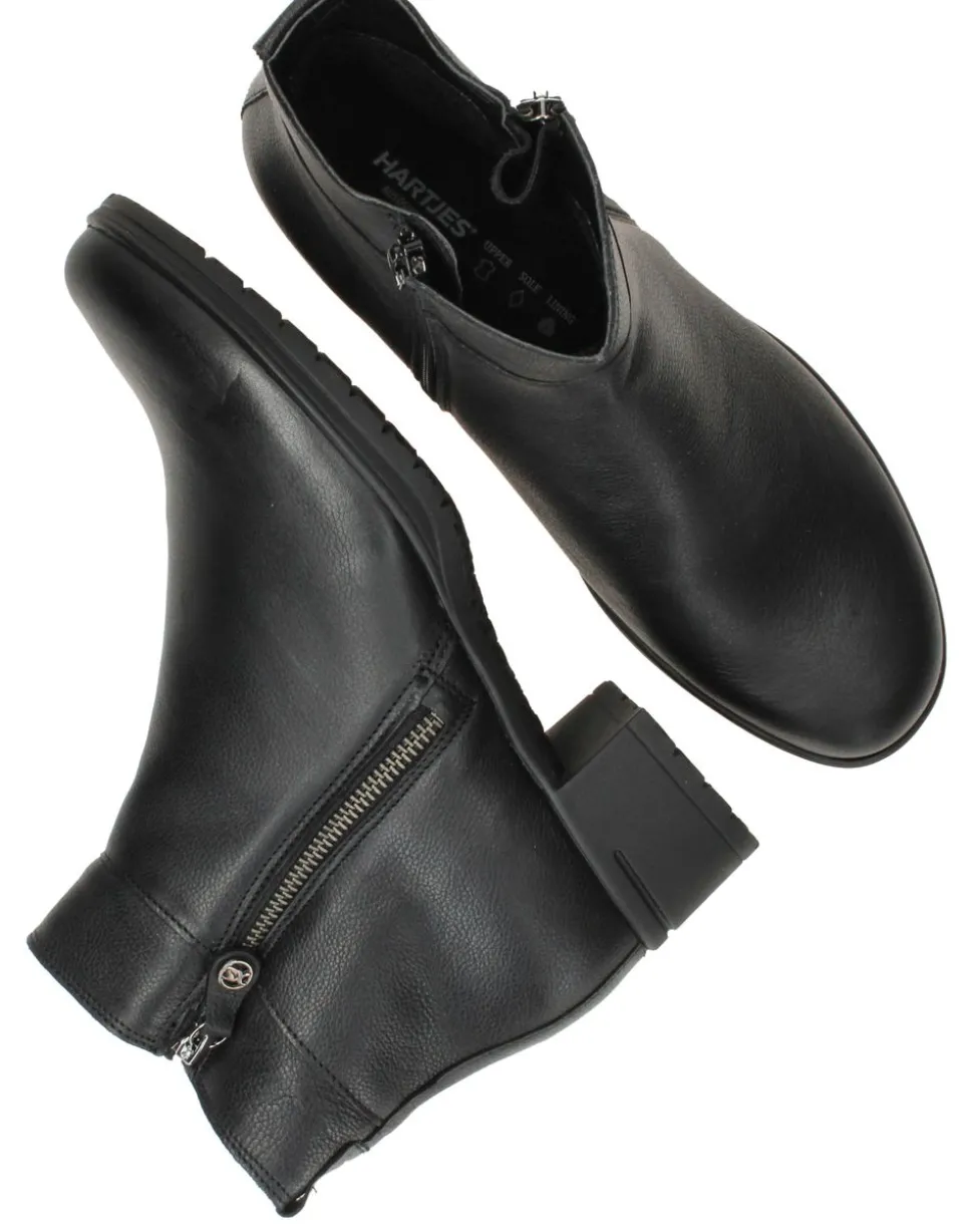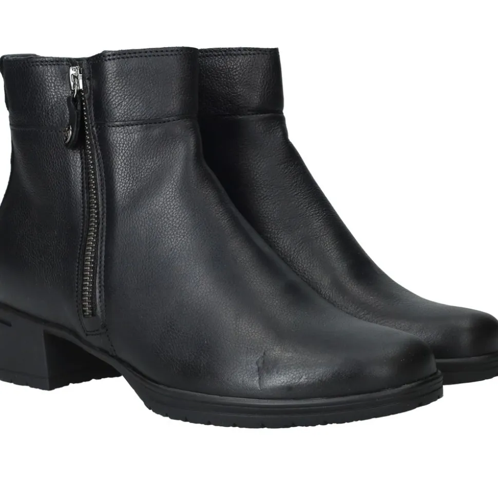 Deze zwarte enkellaarsjes met voetbreedte H combineren stijl en comfort in een tijdloos design. Het bovenwerk van glad leer geeft een luxe en nette uitstraling, terwijl de zachte textielen voering zorgt voor draagcomfort gedurende de hele dag. Perfect voor dames die op zoek zijn naar een veelzijdige die zowel casual als netjes gedragen kan worden.