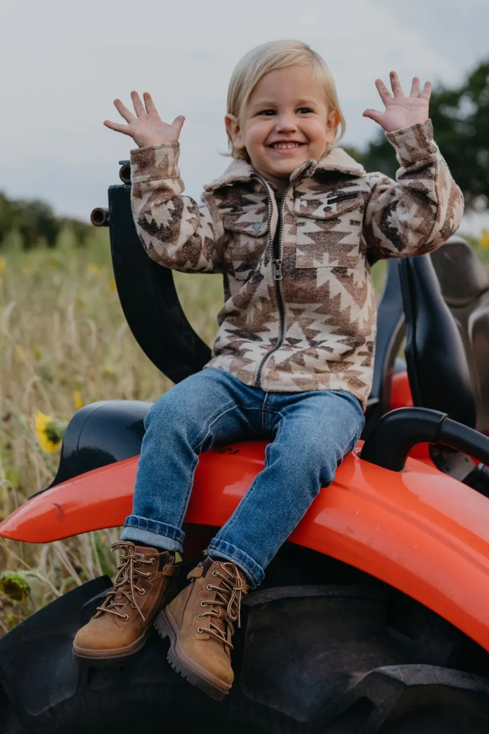 Stoere van voor avontuurlijke jongens. Deze robuuste boots zijn gemaakt van gevet leer en hebben een stevige rubberen profielzool voor extra grip. Dankzij de combinatie van vetersluiting en ritssluiting trek je ze makkelijk aan en uit. De leren voering zorgt voor een ademend en comfortabel gevoel, de hele dag door.