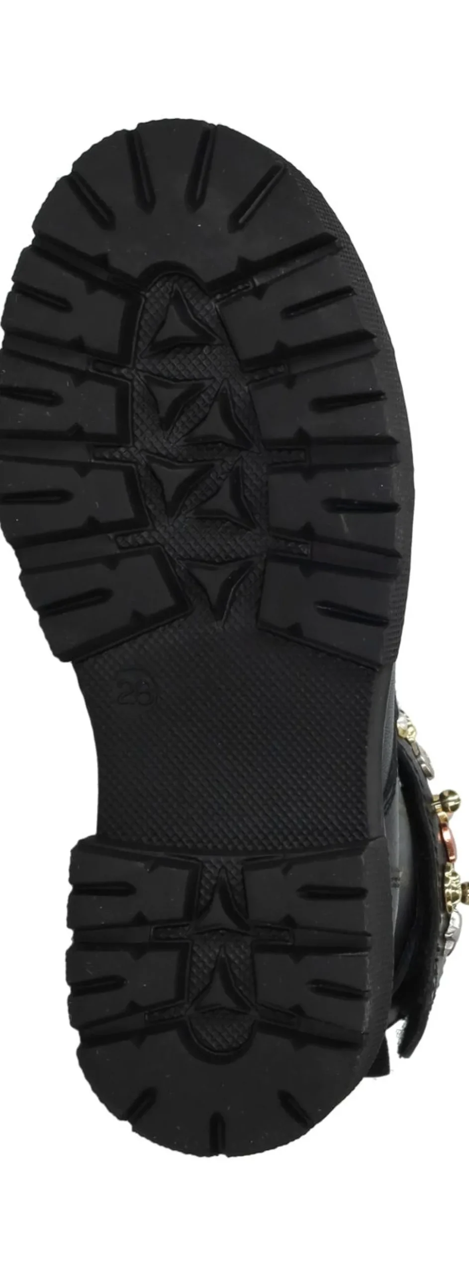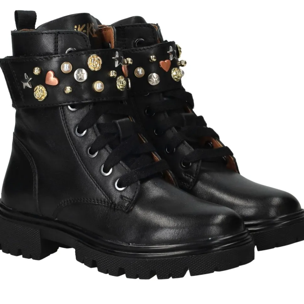 Deze stoere zwarte is helemaal van nu. Het gladde leer is stevig en soepel tegelijk en de brede omslag met vrolijke studs geeft elke outfit extra glans. De voering van leer en synthetisch zit zacht en comfortabel zodat ze de hele dag fijn lopen en spelen.