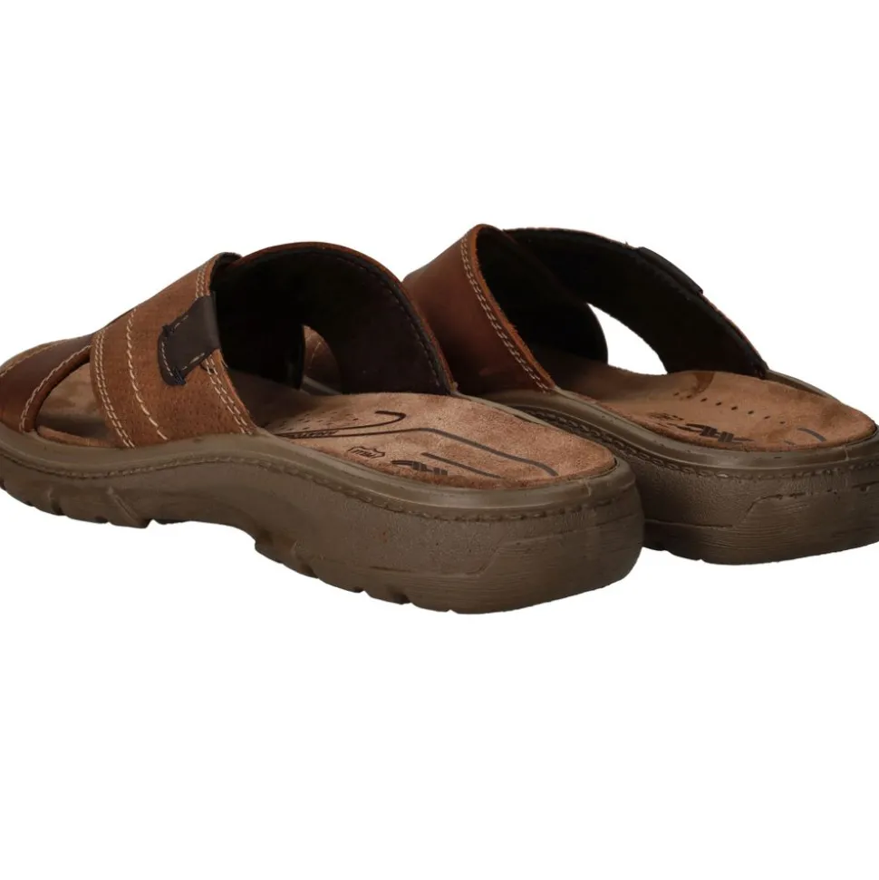 Deze bruine van zijn een comfortabele keuze voor heren die houden van kwaliteit en gemak. Het gekruiste bandontwerp van glad leer en kunstleer geeft een robuuste en stoere uitstraling, terwijl het zachte voetbed zorgt voor optimaal comfort tijdens warme dagen. Perfect voor thuis, op vakantie of een ontspannen zomerdag.