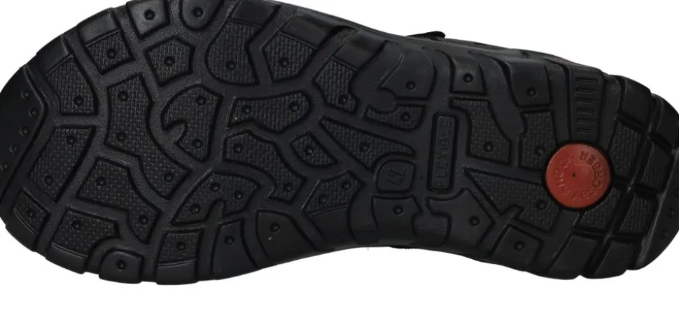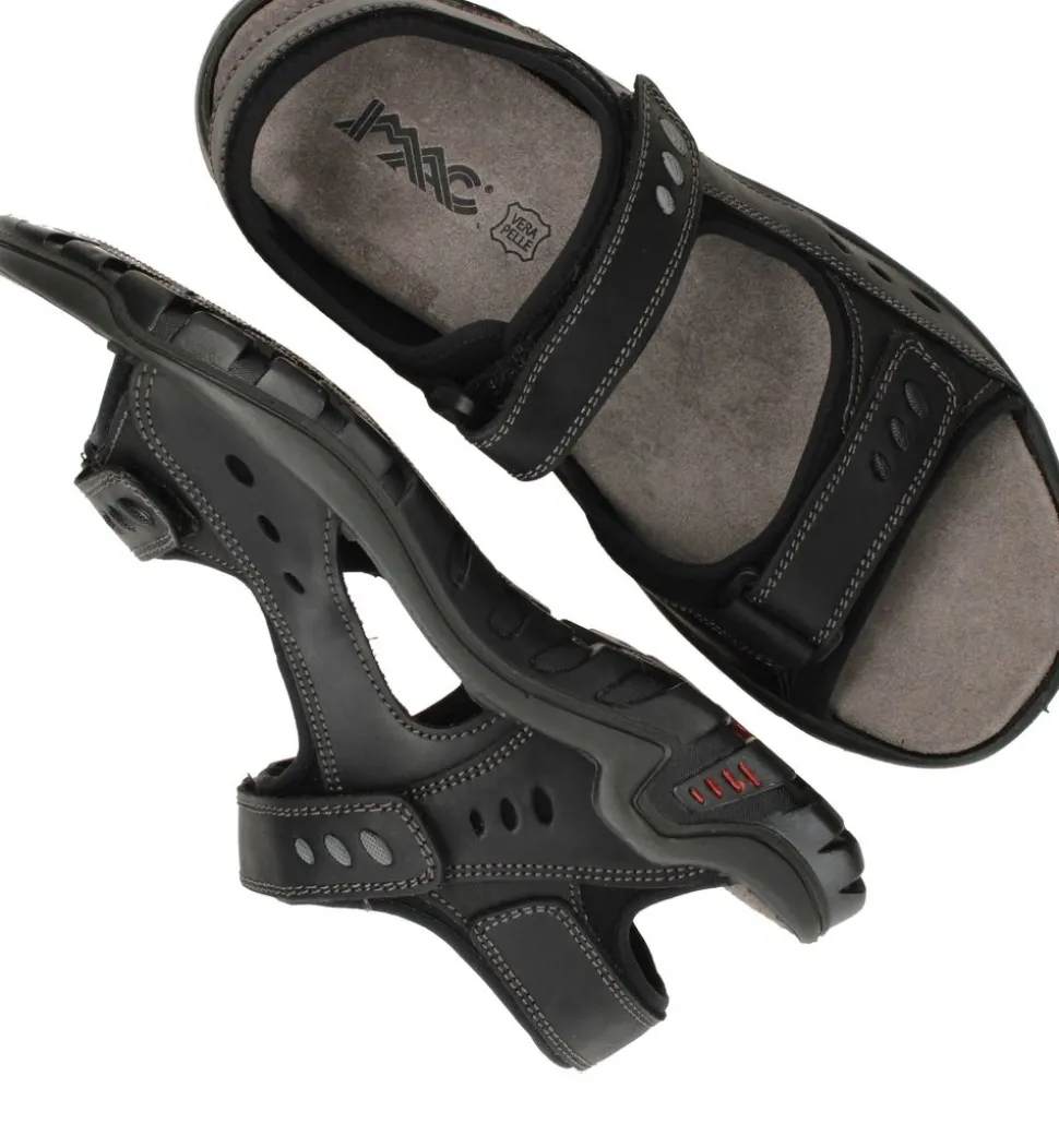 - Deze sandaal heeft een voorgevormd voetbed gemaakt van leer.