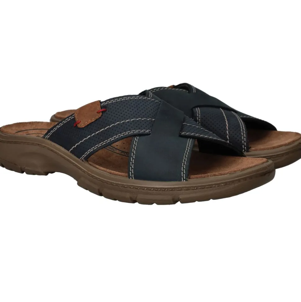 Deze comfortabele van combineren een sportieve uitstraling met het comfort dat je van dit merk gewend bent. De kruisbandsluiting is gemaakt van blauw leer en kunstleer met contrasterende stiksels en subtiele perforaties. Dankzij de zachte textiele voering en normale voetbreedte G biedt deze slipper aangenaam loopgemak op warme dagen.