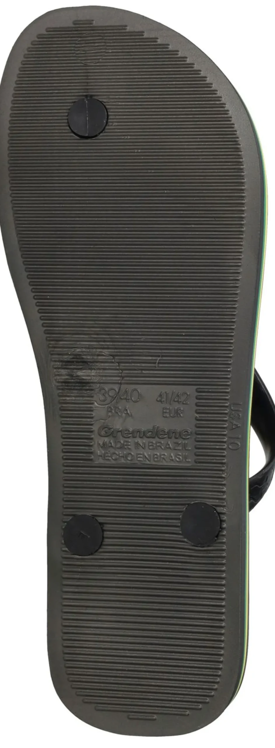 - De slipper heeft een leuke geel met groene streep in de zool.
