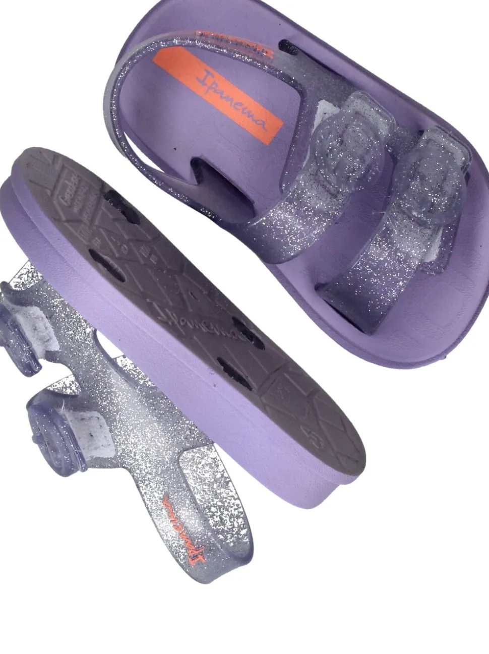- De transparante bandjes hebben gouden glitters.