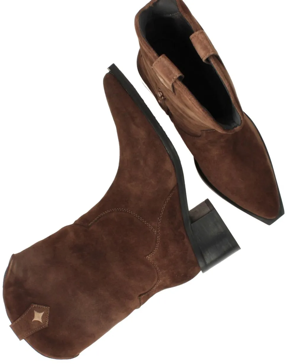 Deze trendy in bruin suède zijn een echte must-have voor het seizoen. Het zachte materiaal en de westernstijl geven de laarzen een stoere en modieuze uitstraling. Dankzij de comfortabele zijn ze ideaal voor dagelijks gebruik. Perfect voor die kiezen voor een combinatie van stijl en comfort.