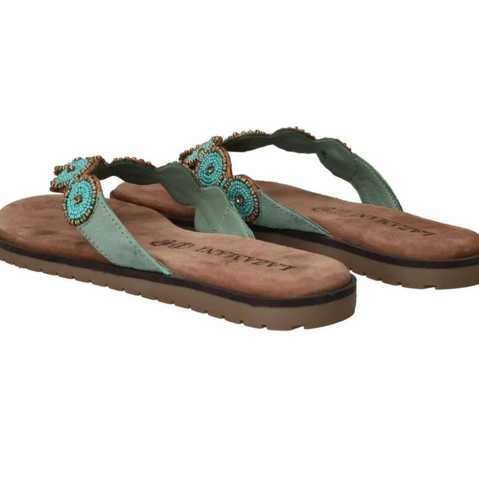 Maak jouw zomer compleet met deze prachtige groene van het trendy merk . Het zachte leer zorgt voor optimaal draagcomfort en vormt zich soepel naar jouw voeten. Door de frisse groene kleur en stijlvolle kraaltjes geven deze slippers je zomerse outfit een vrolijke en modieuze touch. Perfect voor dames die houden van comfort én stijl tijdens warme dagen.