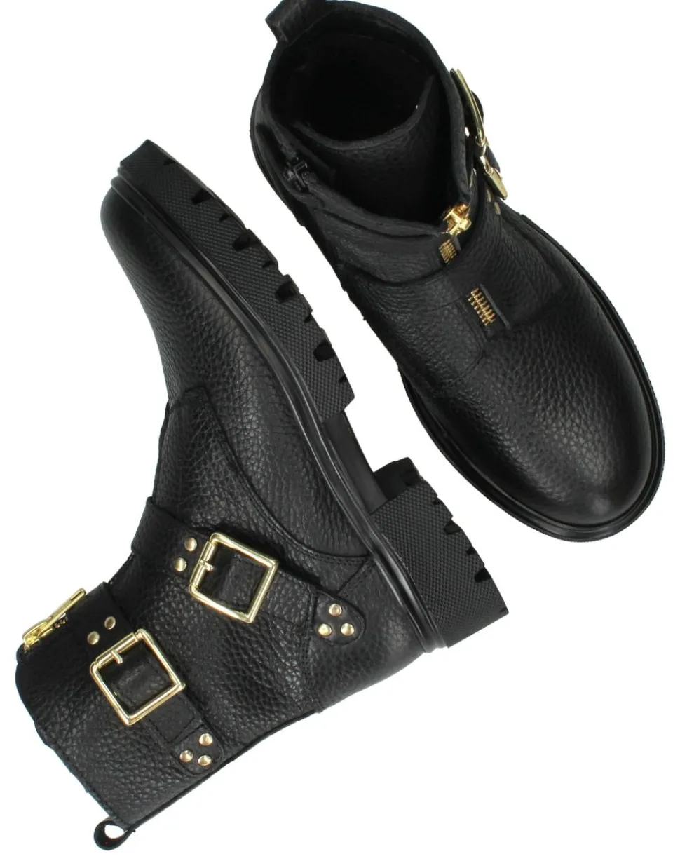 Deze LOFF 1881 bikerboot is dé perfecte keuze voor stoere meiden die houden van een trendy uitstraling. Gemaakt van hoogwaardig leer en uitgevoerd in klassiek zwart, is deze boot zowel modieus als duurzaam. De ritssluiting aan de zijkant zorgt ervoor dat je de schoenen gemakkelijk aan- en uittrekt, terwijl de opvallende gespen en studs de boot een robuuste look geven. Het uitneembare voetbed biedt extra comfort en maakt het mogelijk om je eigen zolen te gebruiken. Let op: dit model heeft een small fit.