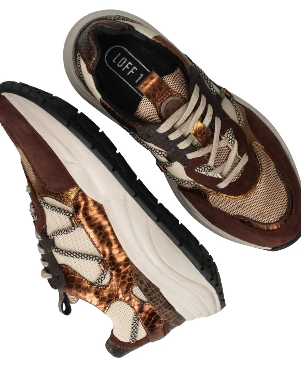 Deze modieuze van LOFF 1881 combineren stijl met comfort en hebben een opvallende bruine kleur met metallic accenten.