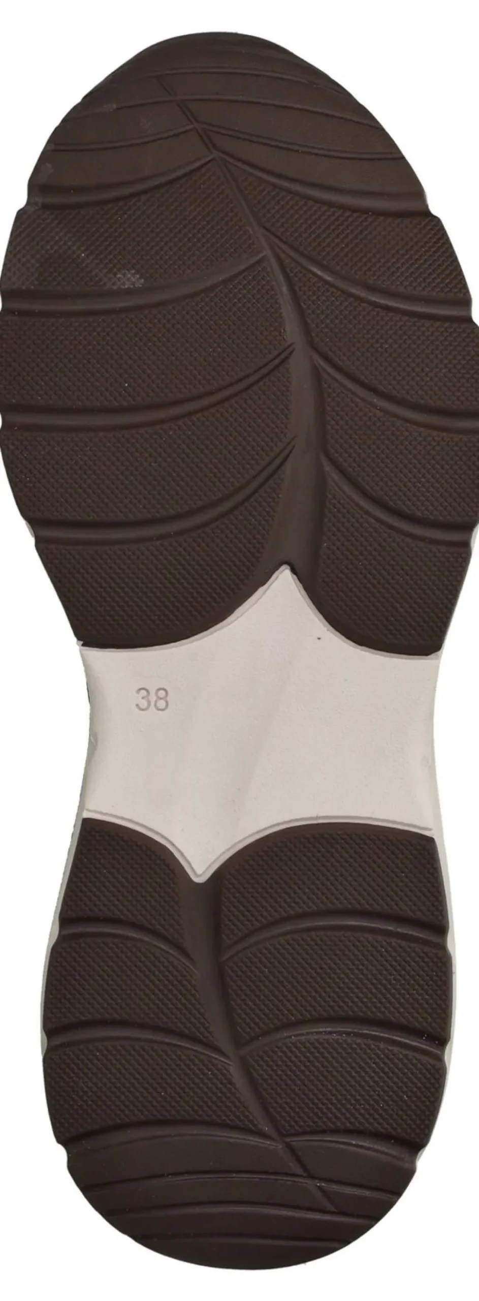 De sneakers zijn een moderne en comfortabele keuze voor dames die houden van een sportieve maar luxe uitstraling. Deze bruin-beige zijn uitgevoerd in leer met metallic details en speelse vormen, wat zorgt voor een eigentijdse en modieuze look. De dikke witte zool biedt extra demping en comfort, ideaal voor dagelijks gebruik.