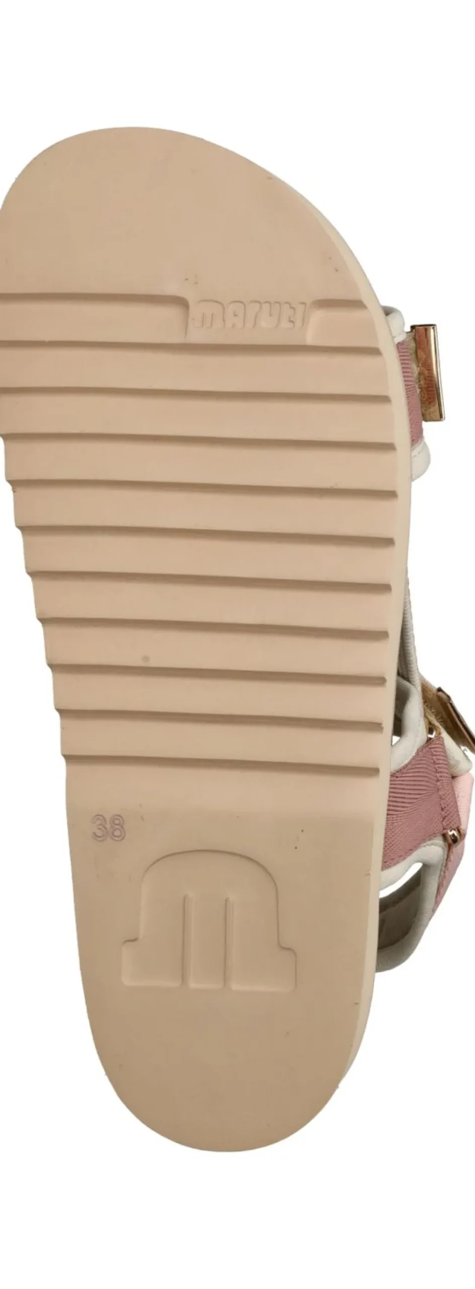 De Maruti Beau voor dames zijn een stijlvolle blikvanger met een sportieve twist. De combinatie van roze en beige textiel met goudkleurige details zorgt voor een frisse, vrouwelijke uitstraling. Deze sandalen zijn voorzien van een zacht voetbed en een stevige plateauzool, waardoor je urenlang comfortabel loopt zonder in te leveren op uitstraling.