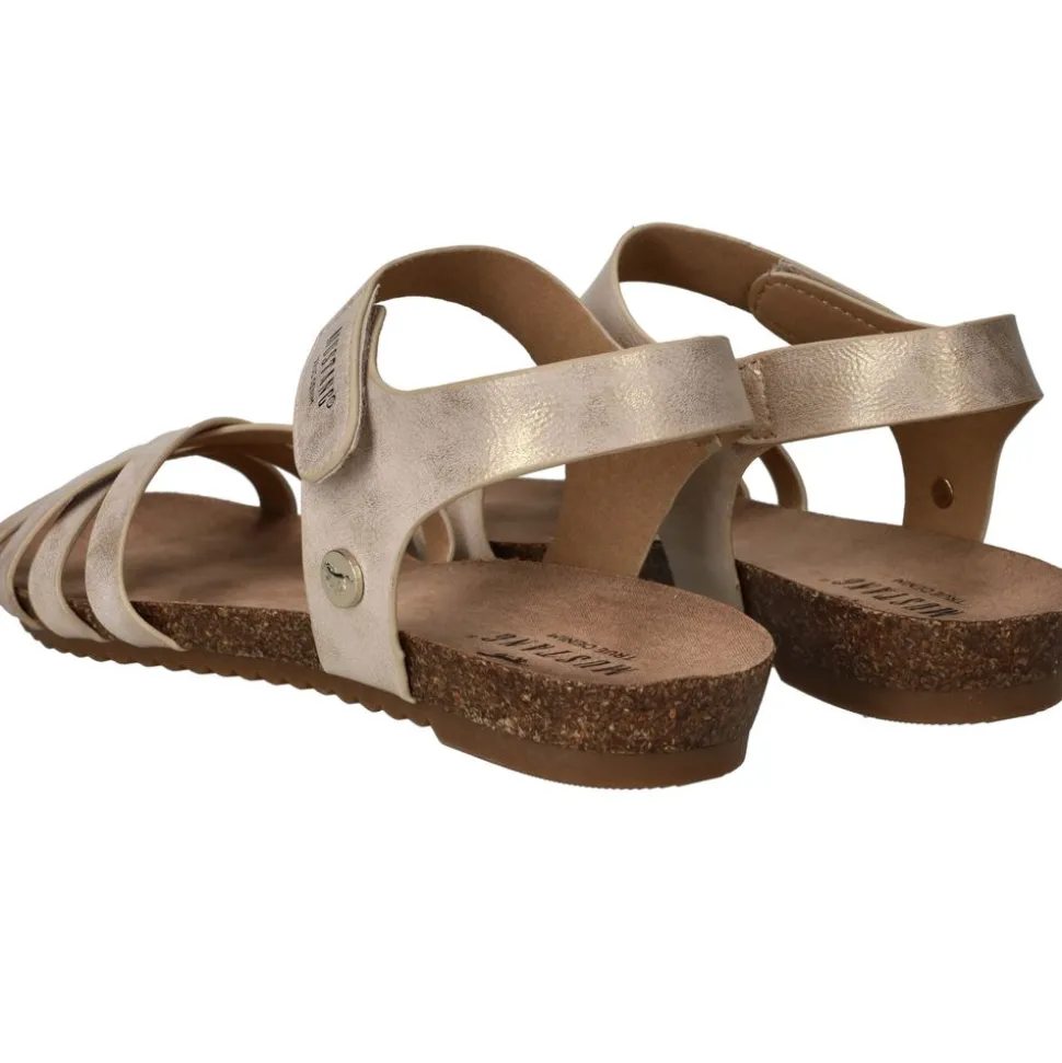 Loop comfortabel en stijlvol de zomer door met de Mustang sandalen, model 1307811. Deze damessandalen in een prachtige gouden kleur zijn vervaardigd uit hoogwaardig imitatieleer, wat zorgt voor een zachte en luxe uitstraling. De sandalen zijn voorzien van een comfortabele sleehak en een zachte binnenzool, waardoor je de hele dag comfortabel kunt lopen. De gekruiste bandjes en de verstelbare klittenbandsluiting geven deze sandalen een unieke en trendy touch.