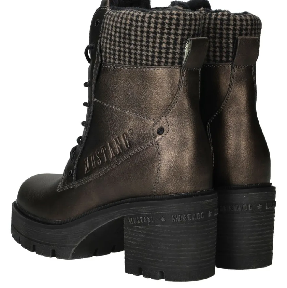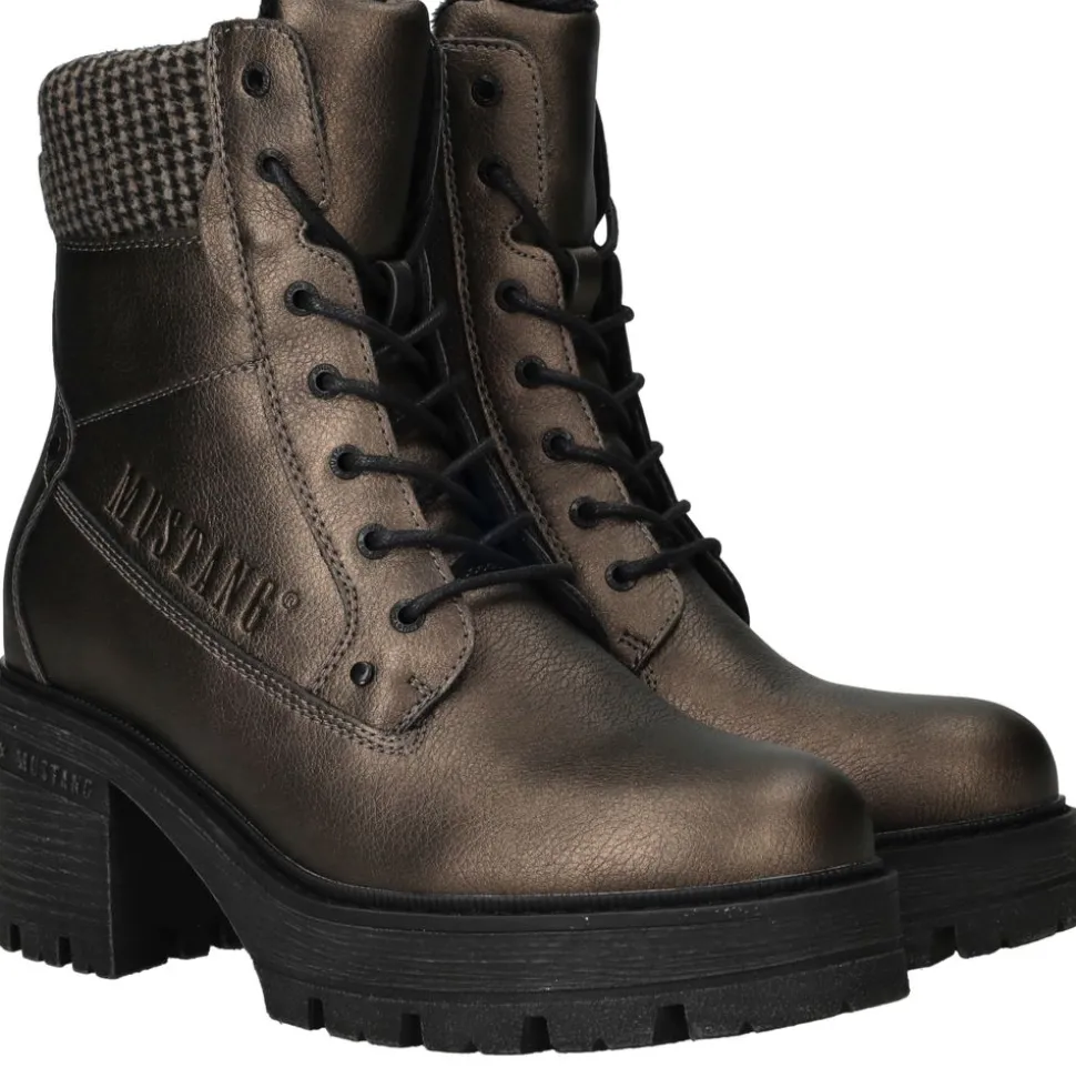 Deze Mustang veterboot voor dames is uitgevoerd in een bijzondere goudkleur en gemaakt van duurzaam kunstleer. Dankzij de combinatie van de veter- en ritssluiting trek je de boots moeiteloos aan en uit. De stoere zool en de warme uitstraling maken dit model perfect voor dagelijks gebruik in het najaar en de winter.