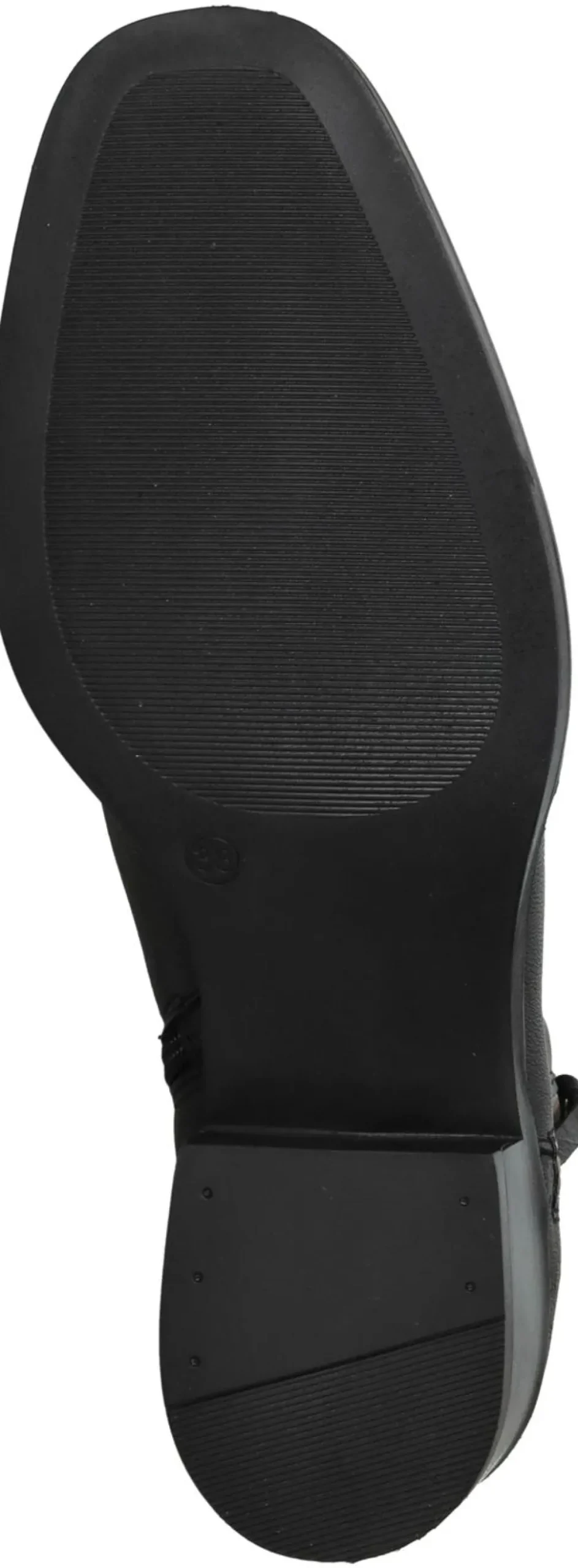 - Het zwarte leer geeft de laarsjes een tijdloze, elegante uitstraling die makkelijk te combineren is.