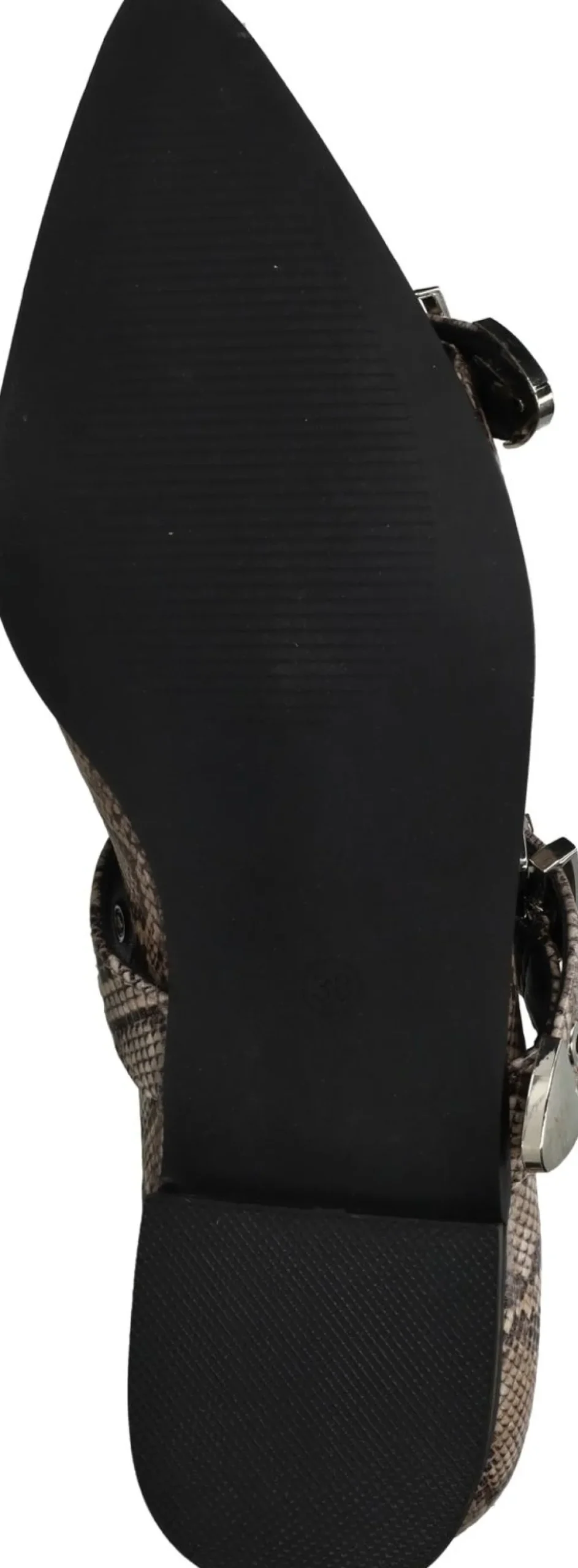 Deze stijlvolle ballerina’s met slangenprint zijn een elegante toevoeging aan je schoenencollectie. Het bovenwerk van kunstleer geeft de schoen een luxe uitstraling, terwijl de voering van kunstleer zorgt voor een soepel draagcomfort. Dankzij het klassieke model met een modieuze twist draag je deze ballerina’s moeiteloos bij zowel casual als chique outfits.