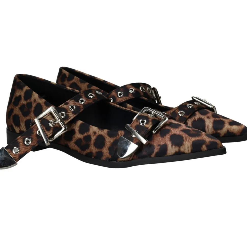 Deze ballerina’s met opvallende dierenprint geven iedere outfit een speelse en trendy uitstraling. Het bovenwerk is gemaakt van textiel met een stijlvolle luipaardprint, terwijl de voering van kunstleer zorgt voor een comfortabele pasvorm. De puntige neus en dubbele bandjes met gespen maken deze uniek en modieus.
