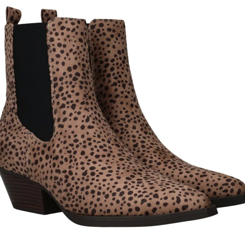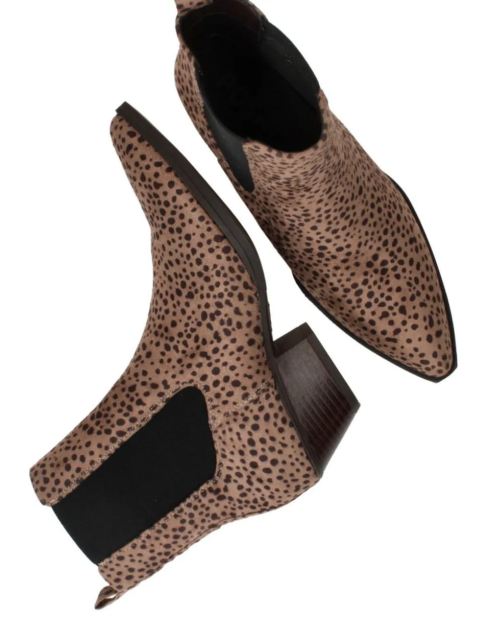 De enkellaarsjes zijn een echte eyecatcher voor dames die houden van een trendy en speelse look. Deze beige zijn uitgevoerd in kunstsuède met een opvallende panterprint. Dankzij de stevige blokhak en het comfortabele design zijn ze zowel stijlvol als praktisch om dagelijks te dragen.
