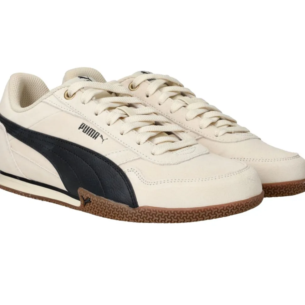 De Puma Bella Donna SD is een stijlvolle knipoog naar retro sportswear, maar met een moderne twist. Deze combineert een beige bovenwerk van suède met een stoer zwart detail van kunstleer. De comfortabele voering van textiel zorgt voor een prettige pasvorm en maakt deze sneaker perfect voor dagelijks gebruik.