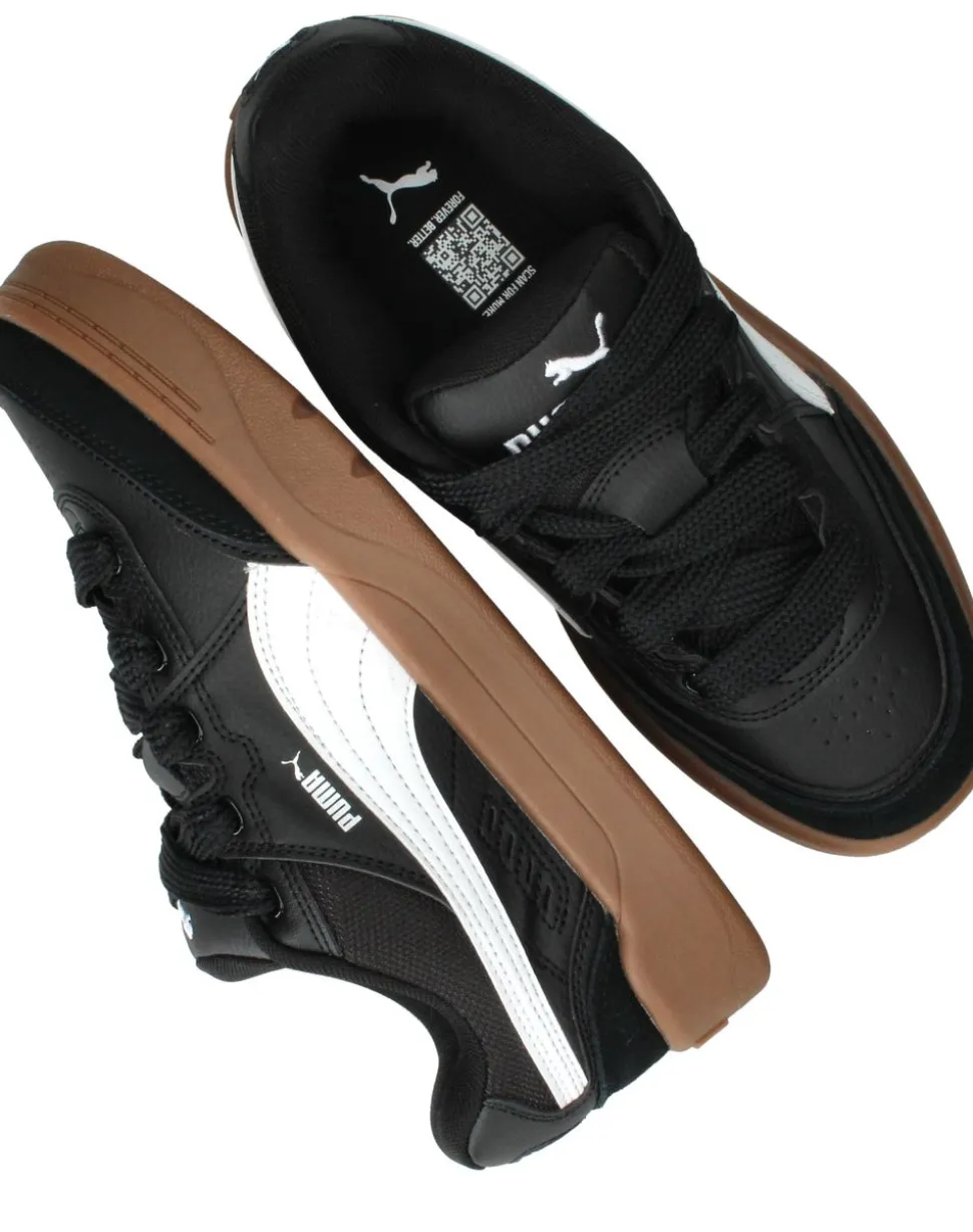 De Park Lifestyle SK8 zijn gemaakt voor jongens die vol energie de dag door gaan. Deze zwarte sneaker combineert kunstleer en suède voor een stoere look en stevige constructie. De witte Puma-streep en bruine zool zorgen voor een sportieve uitstraling, terwijl de zachte textielvoering en voetbreedte G ervoor zorgen dat ze ook heerlijk zitten. Perfect voor school, spelen en alles daartussenin!