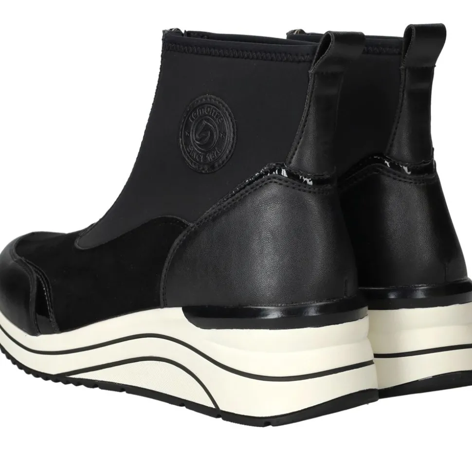 Deze zwarte van is volledig gemaakt van vegan materialen en biedt niet alleen stijl maar ook comfort. Dankzij de voetwijdte H is deze boot perfect voor dames met een bredere voet. De ritssluiting aan de voorzijde zorgt voor een moderne uitstraling en maakt het instappen extra makkelijk. De verhoogde zool zorgt bovendien voor een trendy look met extra demping.