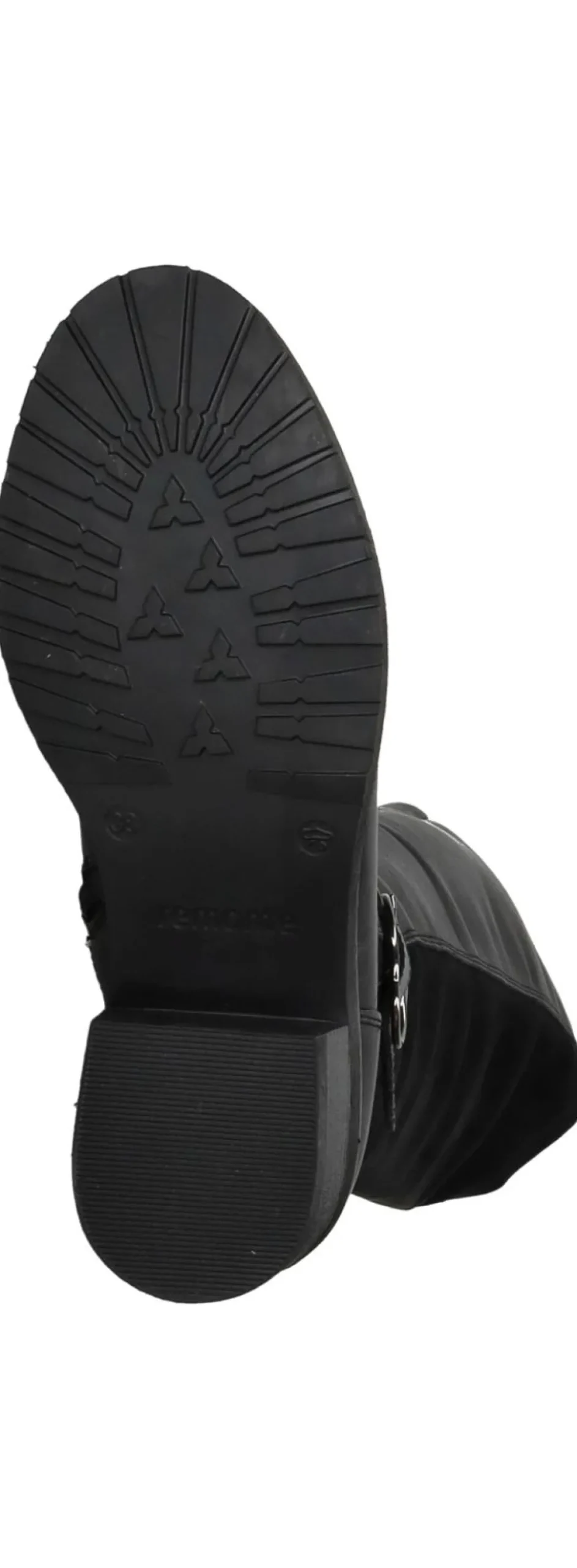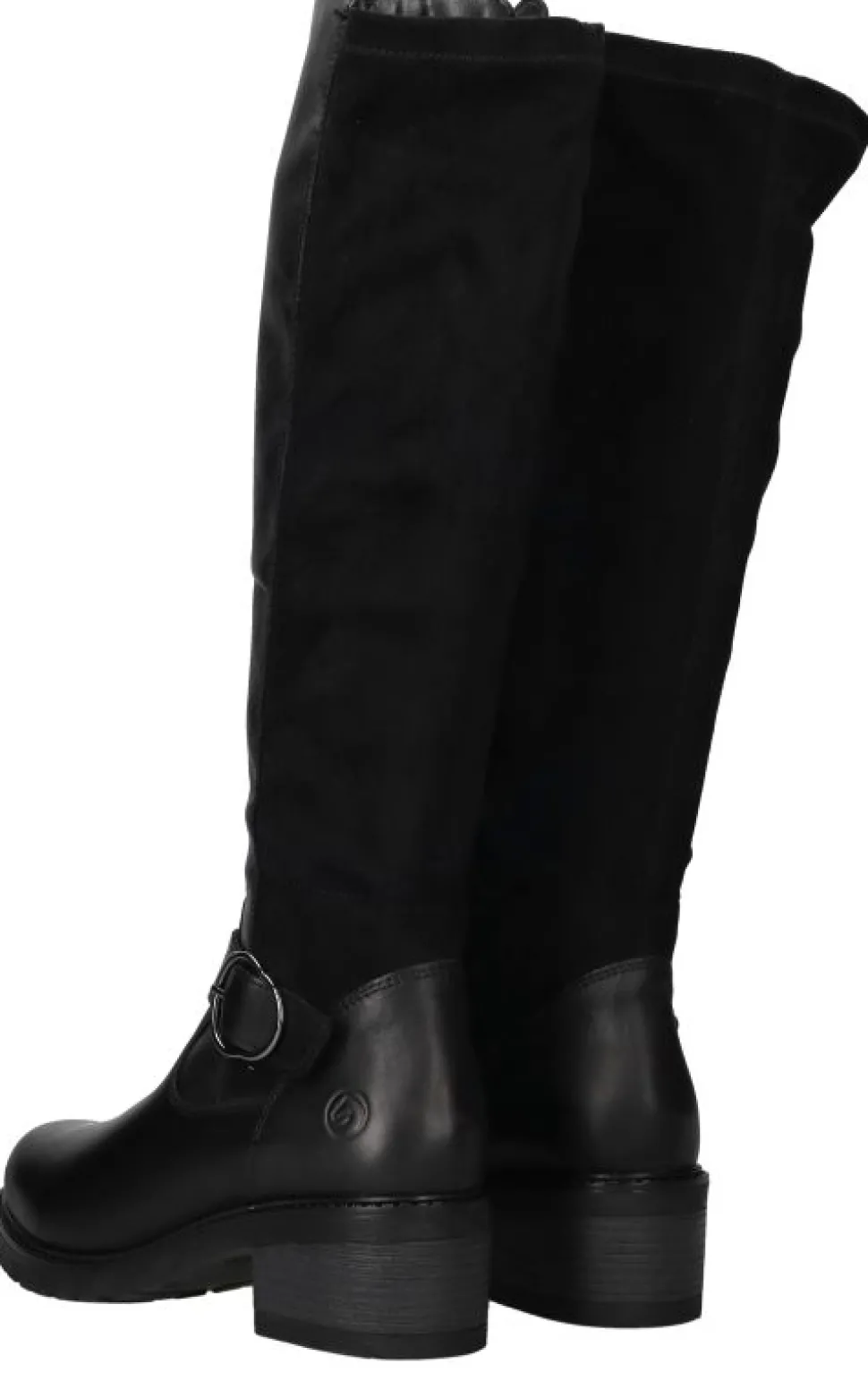 Deze elegante in zwart leer en kunstsuède combineren klasse met comfort. De hoge schacht geeft een verfijnde uitstraling en dankzij de stevige zool geniet je van extra stabiliteit. De combinatie van leer en kunstsuède zorgt voor een stijlvolle contrastlook. Met de comfortabele zijn deze laarzen ideaal voor die houden van elegantie en praktisch draaggemak.