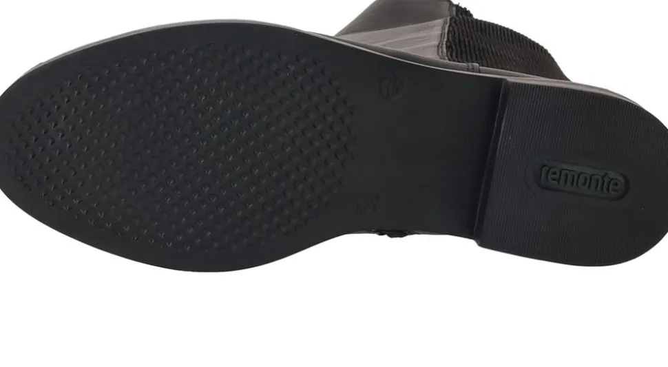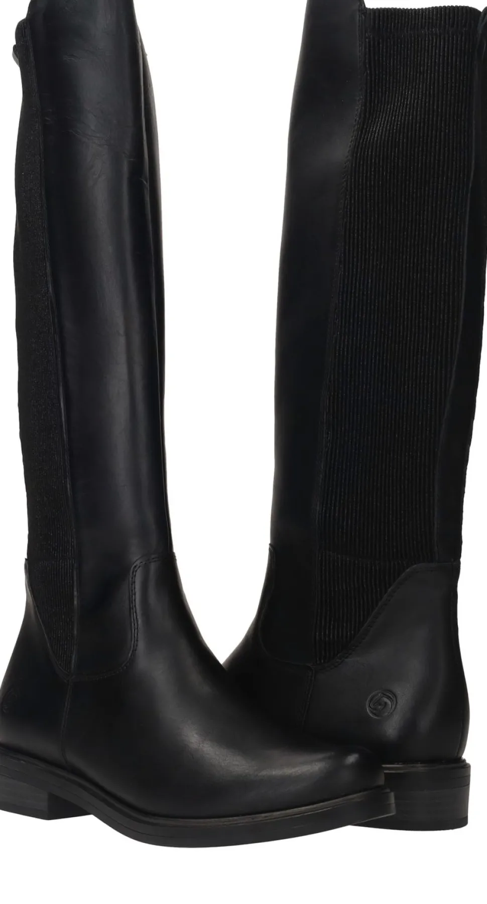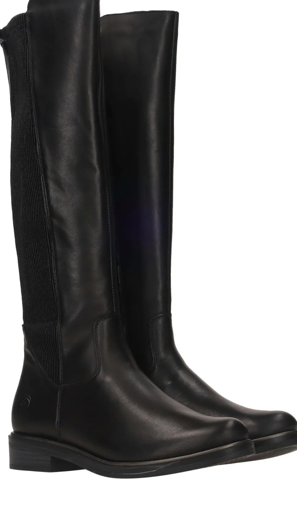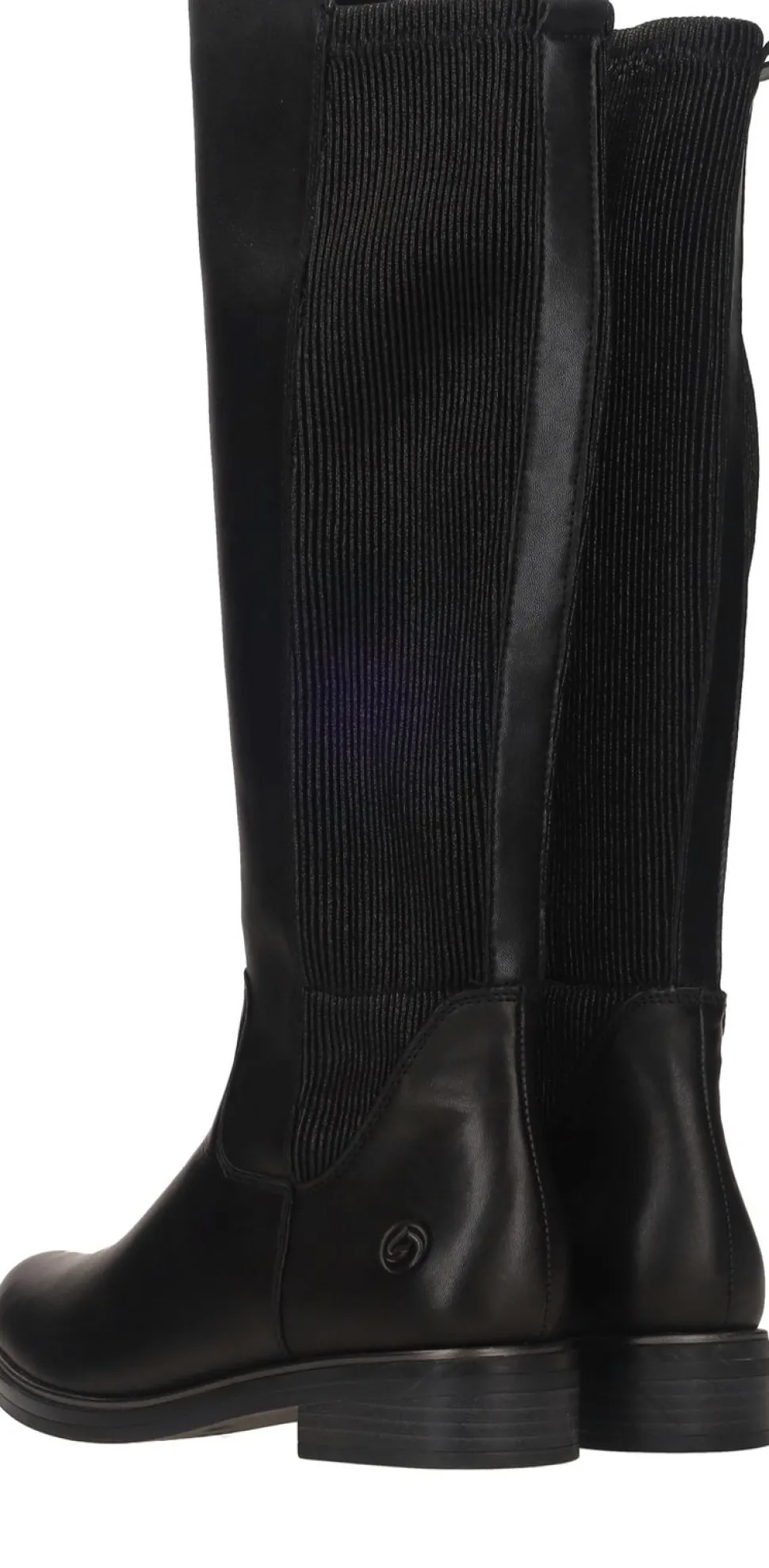 - De laars is gemaakt van leer en rekbaar materiaal.