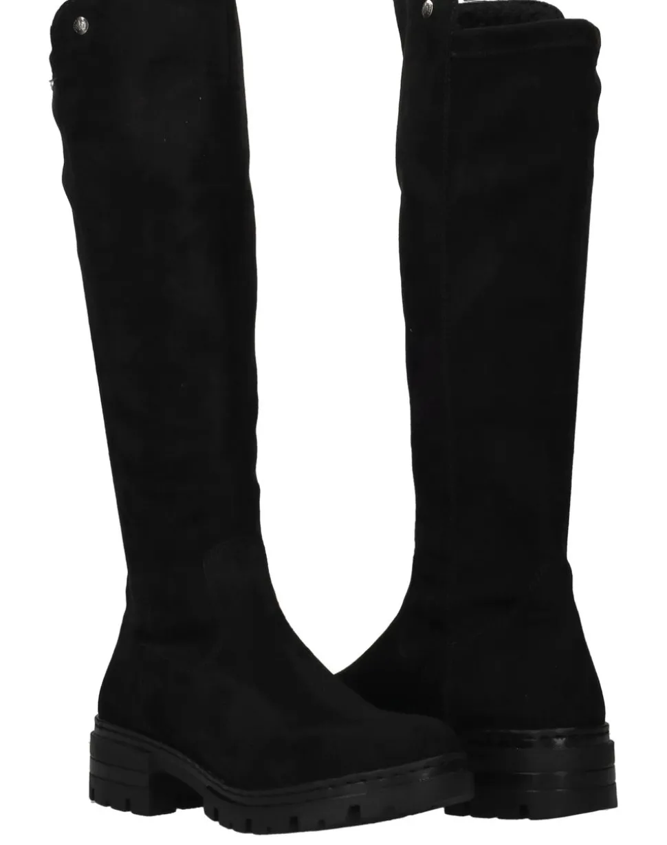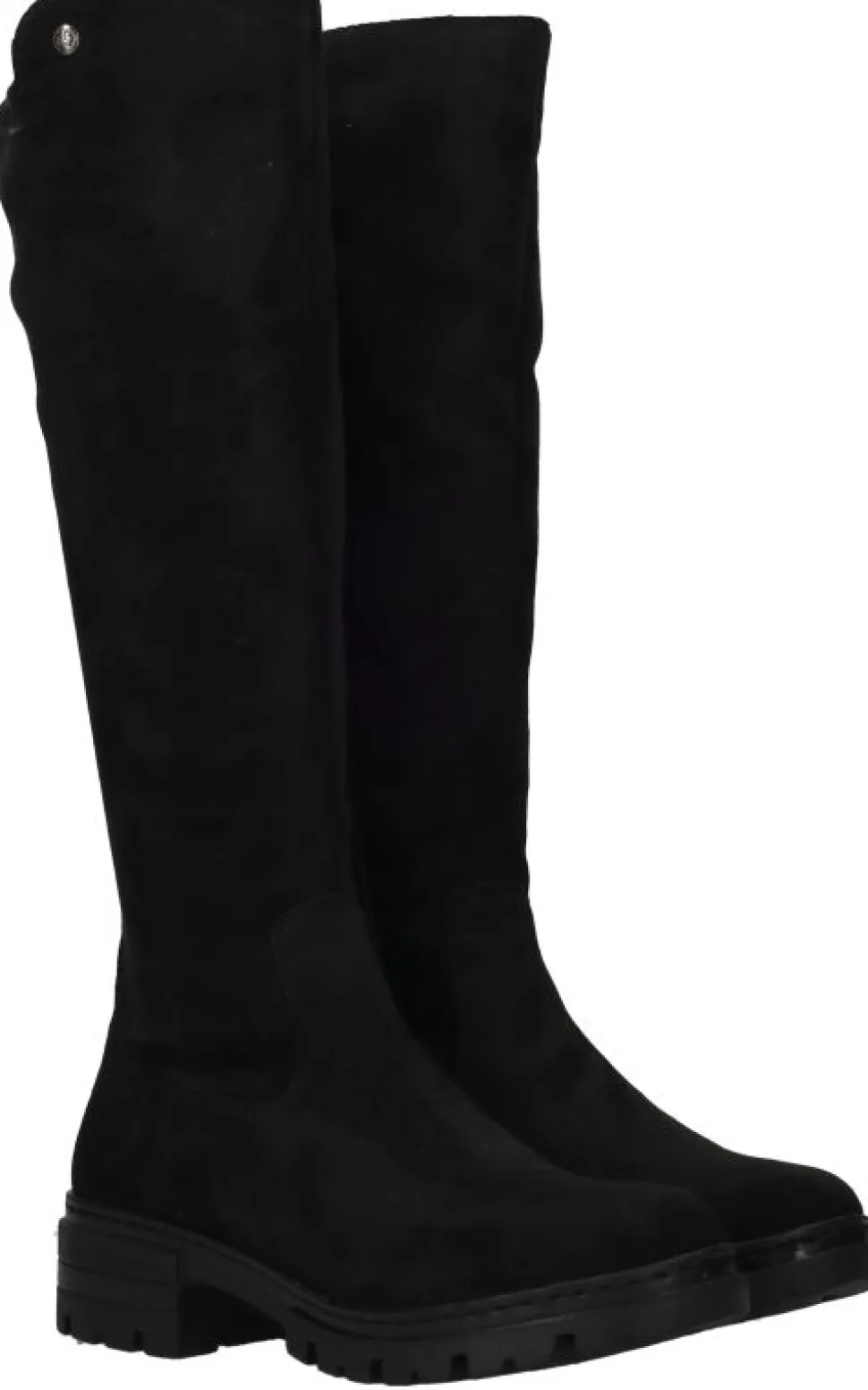 Deze elegante laarzen in klassiek zwart zijn een stijlvolle keuze voor dames die op zoek zijn naar comfort én uitstraling. Het hoge model en de zachte van kunstsuède geven een verfijnde, winterse look die makkelijk te combineren is met elke outfit. De ritssluiting aan de zijkant zorgt ervoor dat je ze eenvoudig aantrekt. De zachte textielen voering biedt aangename warmte tijdens koude dagen.