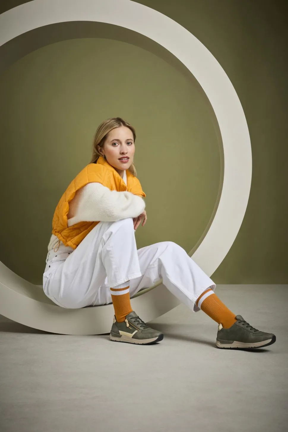 Deze olijfgroene van zijn dé perfecte mix van stijl en comfort. De combinatie van suède en kunstleer met gouden accenten geeft deze sneaker een sportieve maar chique uitstraling. De F ½ voetbreedte maakt hem ideaal voor wie nét een iets smallere schoen zoekt zonder in te leveren op een goede pasvorm.