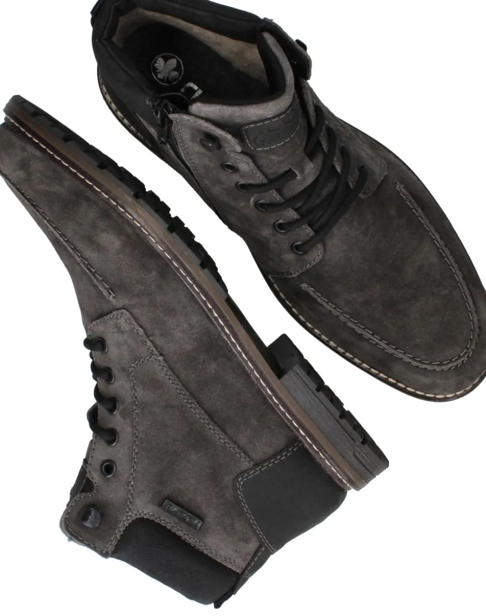Deze stoere Rieker TEX veterboot voor heren combineert robuust design met optimaal draagcomfort. Het bovenwerk is gemaakt van hoogwaardig suède, met een klein stukje kunstleer op de hiel. De warme voering van textiel zorgt voor comfort tijdens koude dagen, terwijl de Rieker TEX-technologie je voeten beschermt tegen vocht en kou. Perfect voor dagelijks gebruik, zowel casual als stoer gecombineerd.